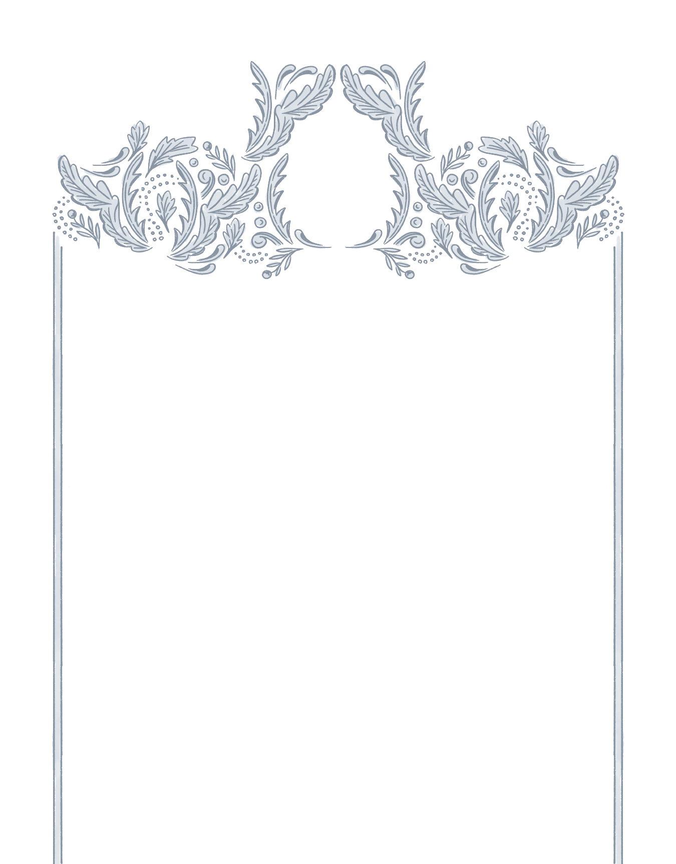 The Wallis collection exudes an air of Victorian-era elegance with its delicately crafted frame, composed of ornate botanical motifs and detailed embellishments, which evoke the refined opulence of a bygone era. This suite was created in collaboration with Jen Owens (@jen.owens2), a self-taught stationery and surface pattern designer. Her intricate style is a blend of whimsy and vintage-vibe. Her work can be found on stationery, fabric, and wallpaper.