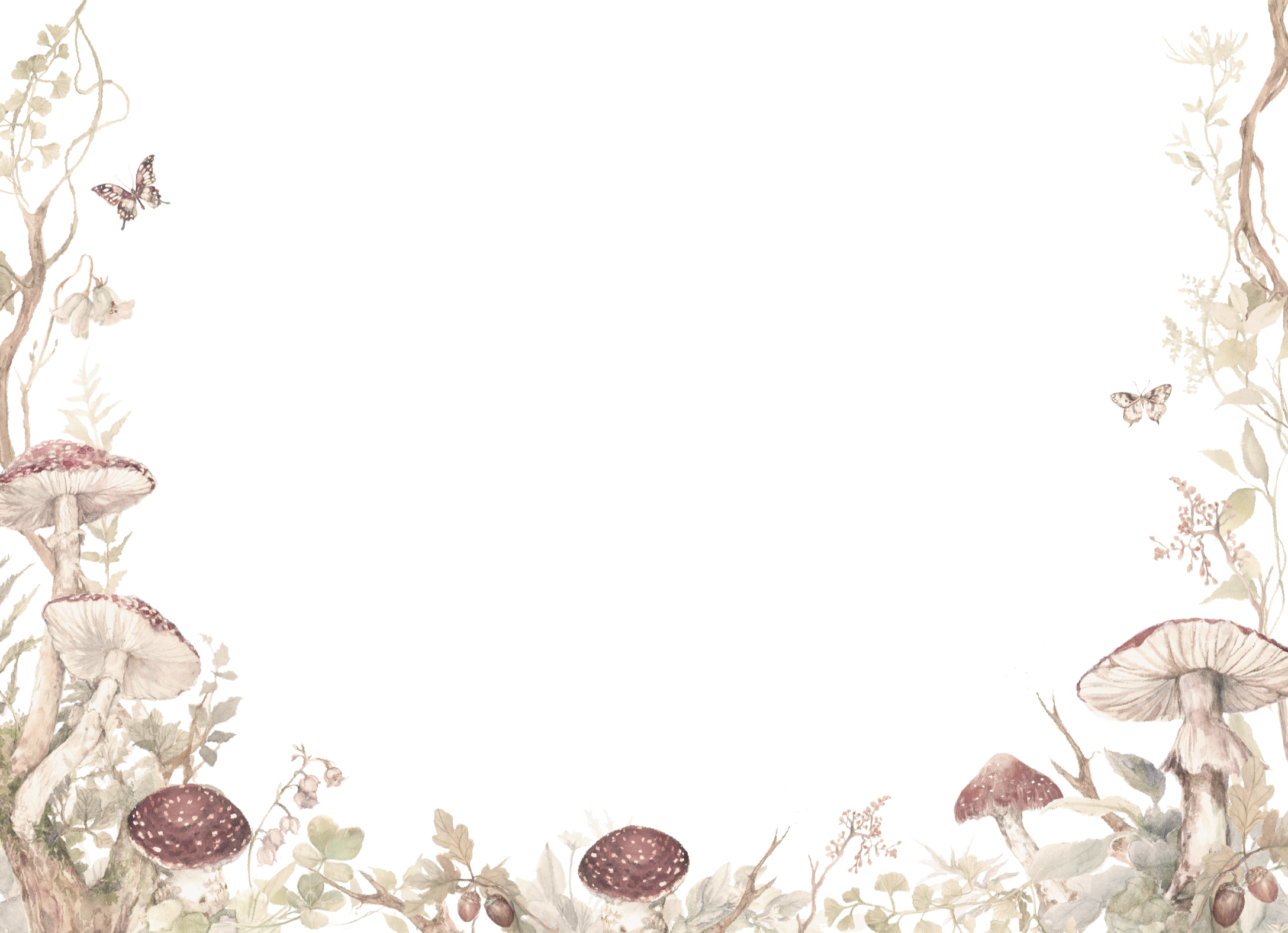 Eden is a whimsical and enchanting collection, featuring lush, painterly illustrations of charming mushrooms, ferns, and flora that create an immersive woodland border. The classic serif and elegant script typography beautifully complement this magical and organic design. We think it's perfect for couples seeking a design that evokes a charming fairytale or a serene forest setting. This suite was created in collaboration with Clara McAllister (@claramcallister), a pattern designer and visual artist specializing in gouache and watercolor paintings. She draws inspiration from nature, vintage botanical illustrations, and mystical elements.