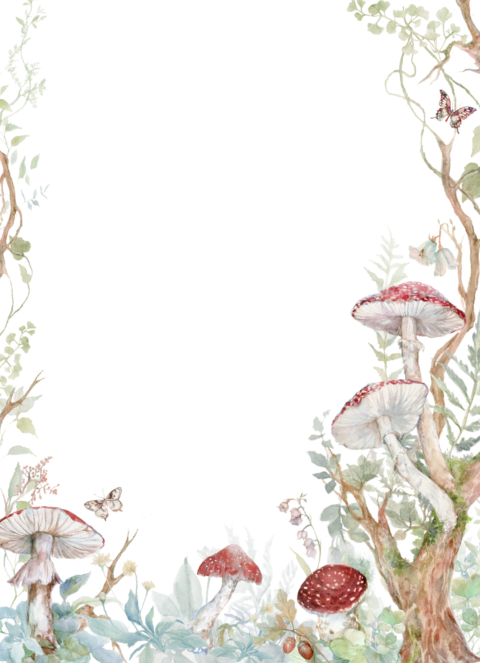 Eden is a whimsical and enchanting collection, featuring lush, painterly illustrations of charming mushrooms, ferns, and flora that create an immersive woodland border. The classic serif and elegant script typography beautifully complement this magical and organic design. We think it's perfect for couples seeking a design that evokes a charming fairytale or a serene forest setting. This suite was created in collaboration with Clara McAllister (@claramcallister), a pattern designer and visual artist specializing in gouache and watercolor paintings. She draws inspiration from nature, vintage botanical illustrations, and mystical elements.