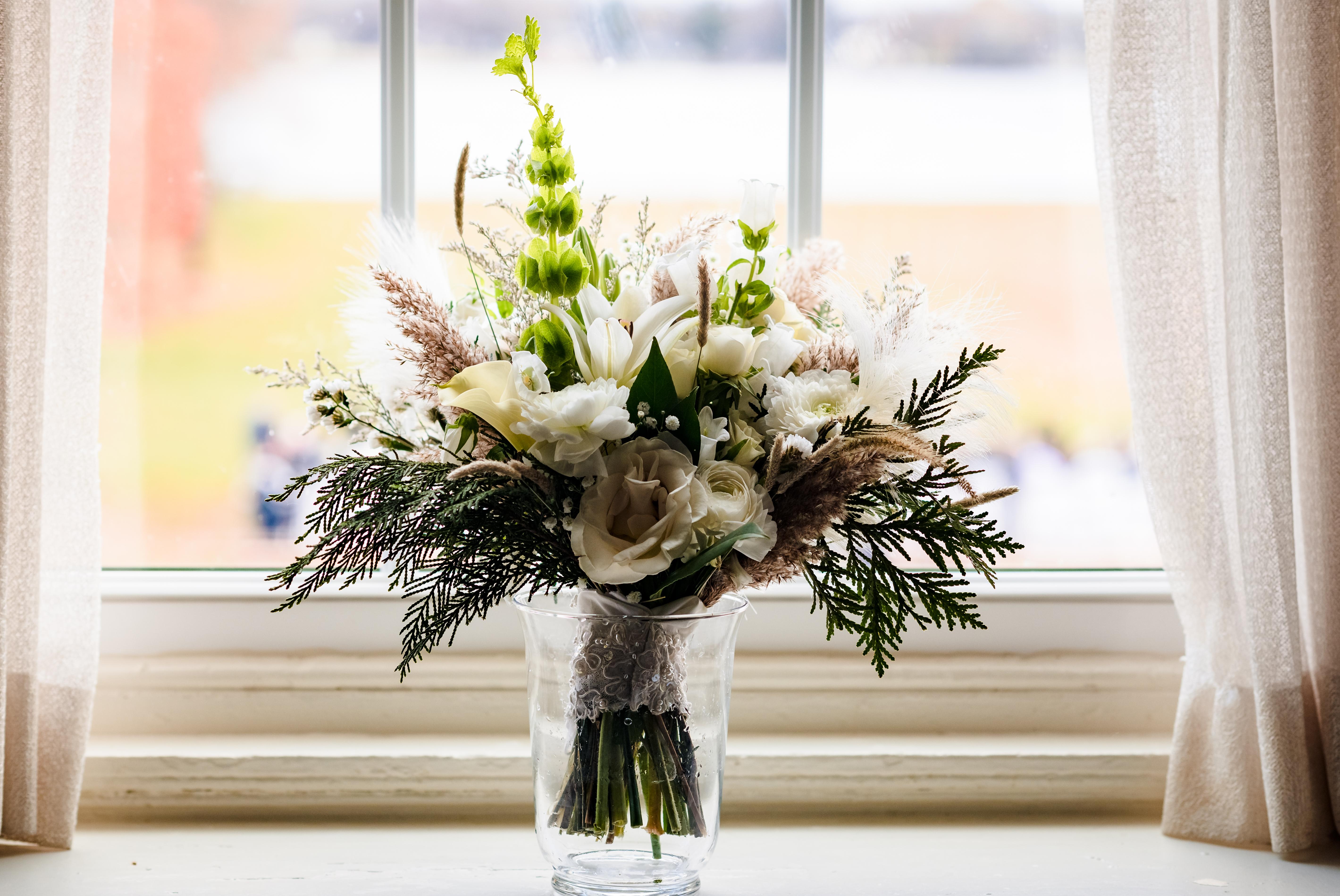 We are so grateful that we had the opportunity to partner with Melissa from Valleygreen Flowers & Gifts for our wedding florals at The Valley Green Inn! The entire process from start to finish was seamless and professional, and our flowers turned out more gorgeous than I could have possibly imagined! Everything was so perfect, I cried when I first held my bridal bouquet on our wedding day. We initially contacted Melissa only 6 weeks before our wedding (which was pretty last-minute). After chatting on the phone, we sent her some Pinterest boards with more details about our style and vision. Within 24 hours, Melissa sent a very thorough itemized proposal with the exact flowers and items for us to confirm within our wishlist and budget range, such as bouquets, corsages/boutonnieres, the flower girl basket, the ceremony arch, table centerpieces, and wedding cake florals. The whole proposal signing and decision-making process was super smooth and easy. Something I thought was really unique is that they were able to repurpose our ceremony arch into our sweetheart table decor in order to reduce the cost, as well as repurpose the flowers in a sustainable way. We really didn’t need much additional decor for our wedding because the flowers brought everything to life within the venue space. On the day of our wedding, Valleygreen Flowers & Gifts delivered and installed all of our floral arrangements before we arrived, taking care of all of those details behind the scenes seamlessly. Do yourself a favor and reach out to Valleygreen Flowers & Gifts if you are looking for a fully custom, collaborative, and seamless wedding florist experience!