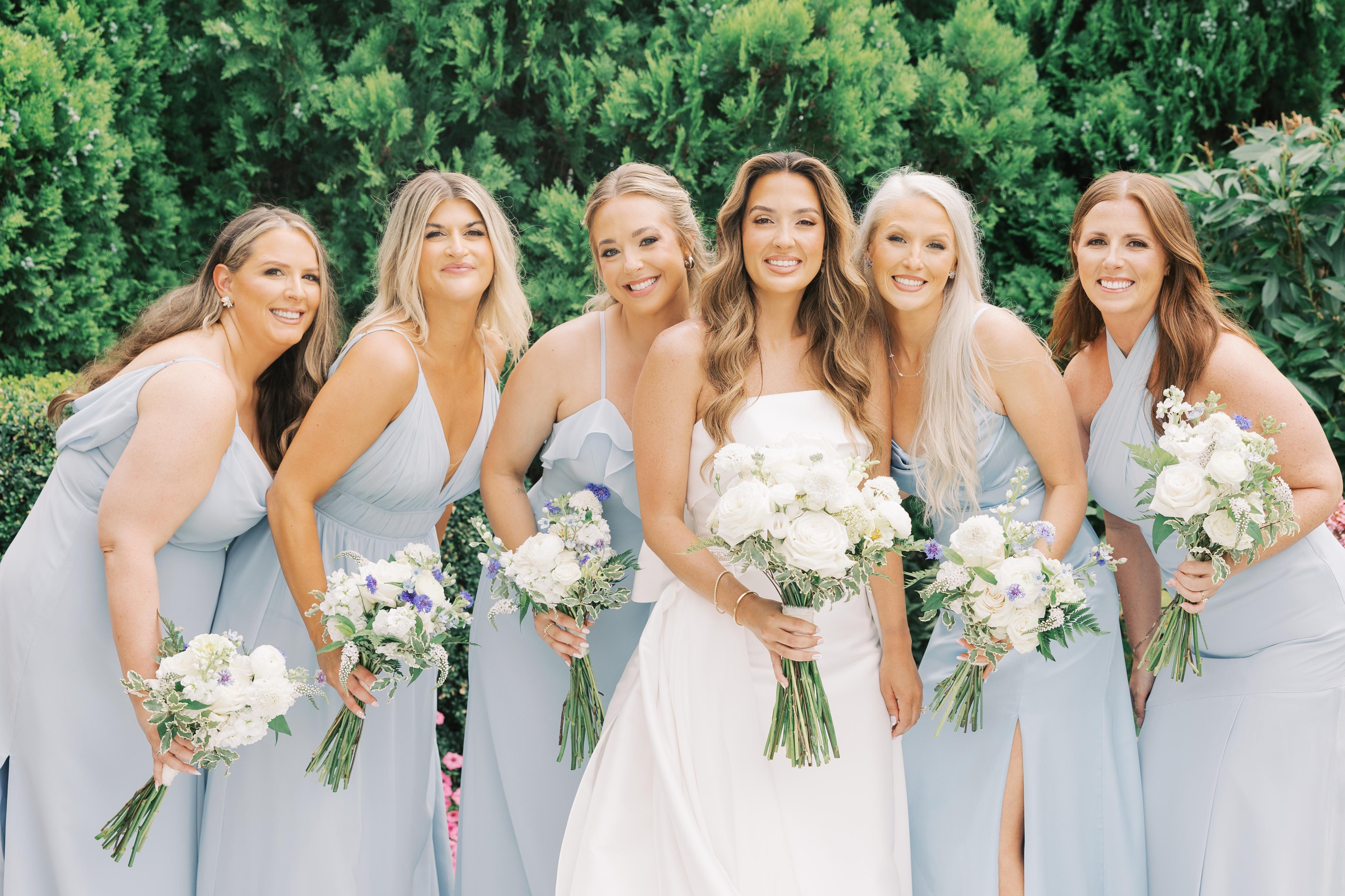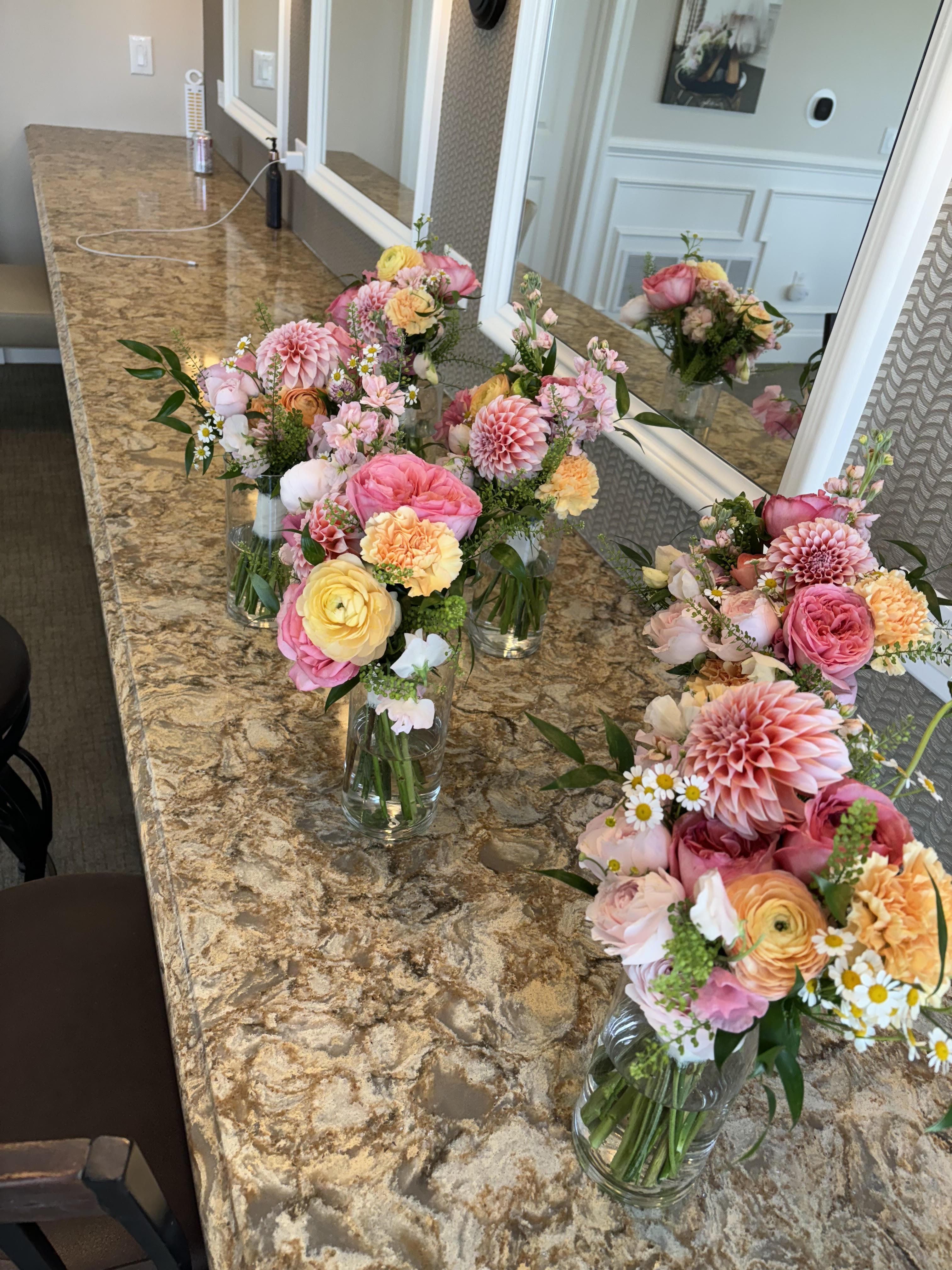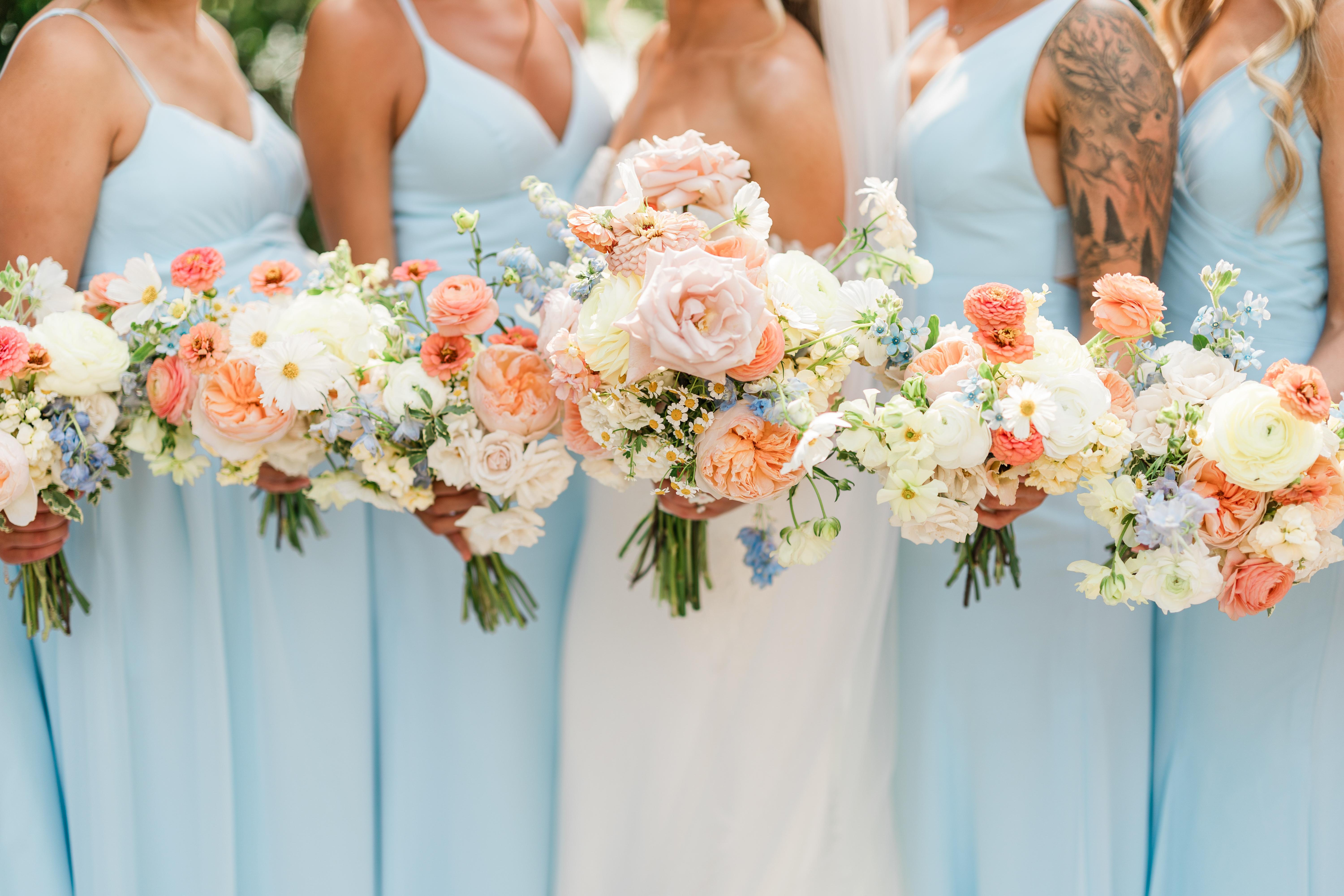 We used Addiction Florals for our bouquets, boutonnieres, and corsages. Everything came out beautifully! Kristine was able to find flowers that perfectly complemented the girls' dresses and matched my vision for minimal greenery and pops of color.
