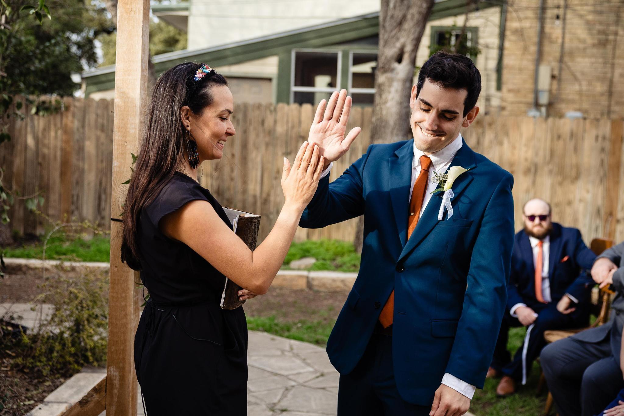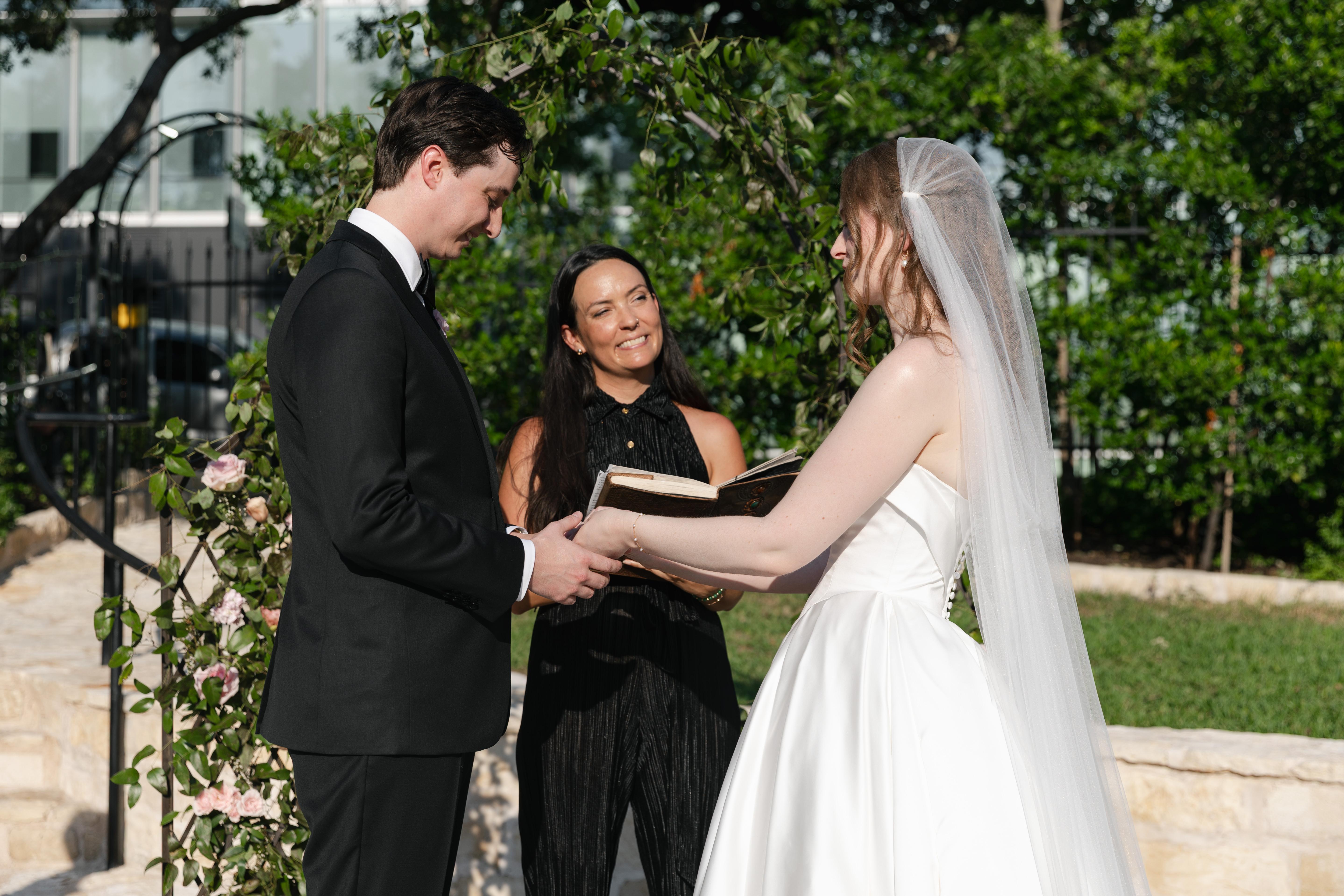 “I never knew having the perfect officiant would make your wedding day even more beautiful and calming, if such comparison exists. Every time I think of Karol my heart smiles. She truly makes the time to get to know the couple and understand their needs. When communicating with her, you can expect every interaction to be respectful, exciting, and reassuring. In my experience, I would say enduring a hurricane the day before your wedding, along with power outages might be the most stressful thing. However, though stress was inevitable in my situation, Karol stood calm and collected. She was assertive when directing the parties, yet comforting when needed. In searching for an officiant/reverend, our main focus was finding someone bilingual in both Spanish & English with a sense of compassion, however, Karol far exceeded those expectations. I'm am forever grateful Karol was part of our special day. She delivered beautiful words, celebrated us, and welcomed a good party afterwards :)”