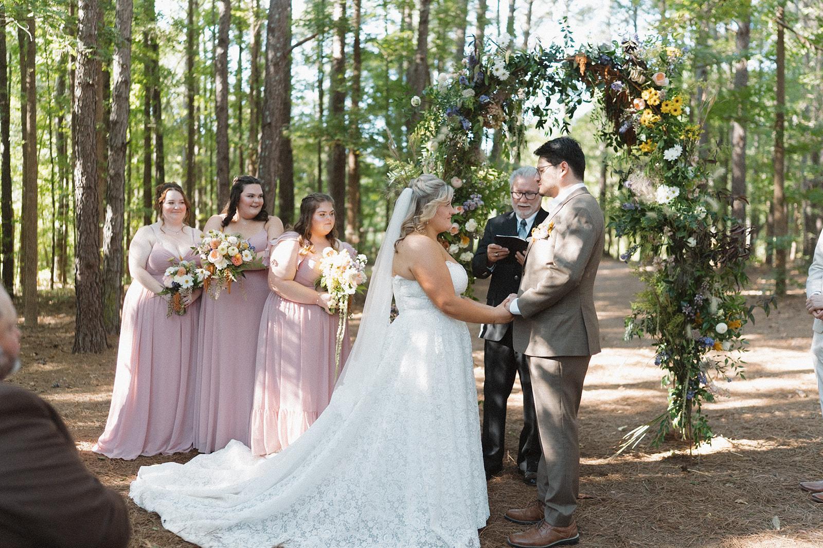Flowergirls NC was a joy to work with for our wedding. Their communication was always quick, with clear and direct answers to our questions. The quality of their work was exceptional - the flowers were absolutely beautiful and they were able to capture the exact look I had envisioned, all while staying within our budget. They even built the stunning flower swags on site for our arbor to ensure everything looked spectacular. I would highly recommend Flowergirls NC to any couple planning their wedding.
