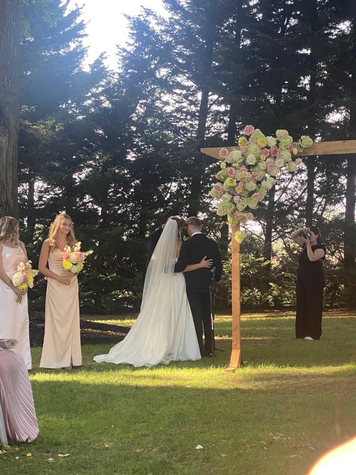 On our wedding day Miranda showed up in full confidence, gave us a sweet card that we later learned had the info of the farms where our flowers came from, and then she created art. We were absolutely blown away at watching her arrange our alter centerpieces, at how beautiful my bouquet was, and just how fast she made the arrangements! We really appreciated how tidy she was, her energy, and all of our guests complimented our florals too! My only regret was not taking any of our arrangements home (we have a cat who would’ve eaten them) but I am so glad that I chose to get my bouquet preserved!