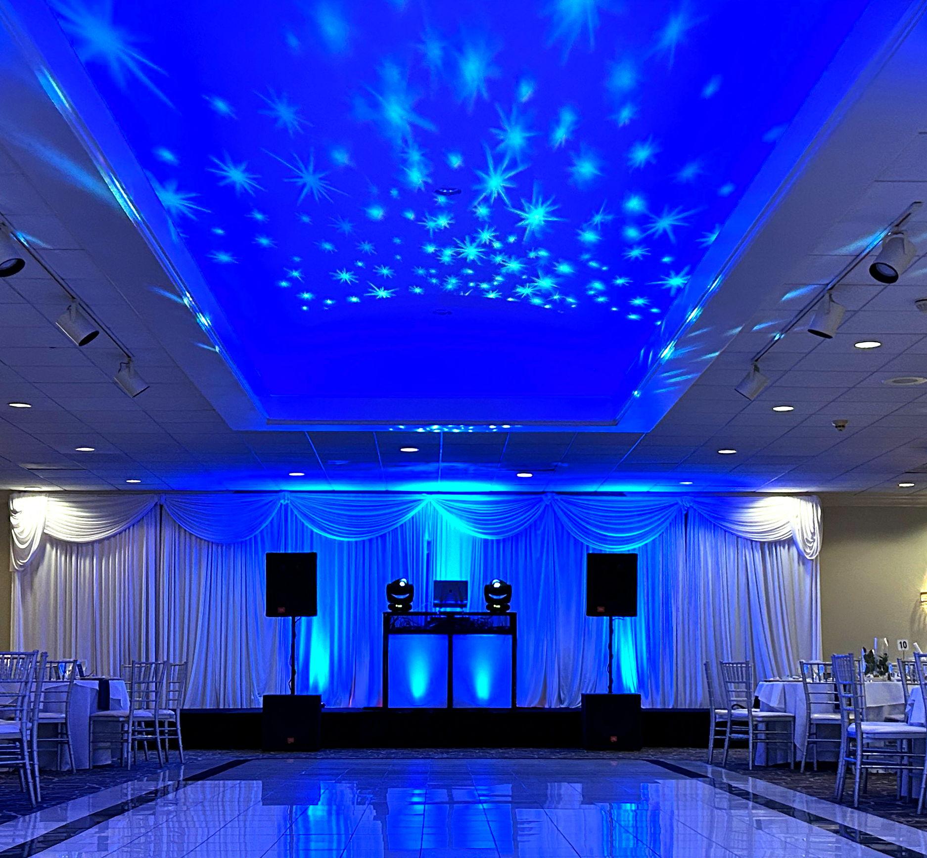 Programmable patterns and dynamic beams ignite the walls, dance floor, and ceiling. Perfectly synced with wireless uplights, it creates a stunning light show that fills the room with energy and style.