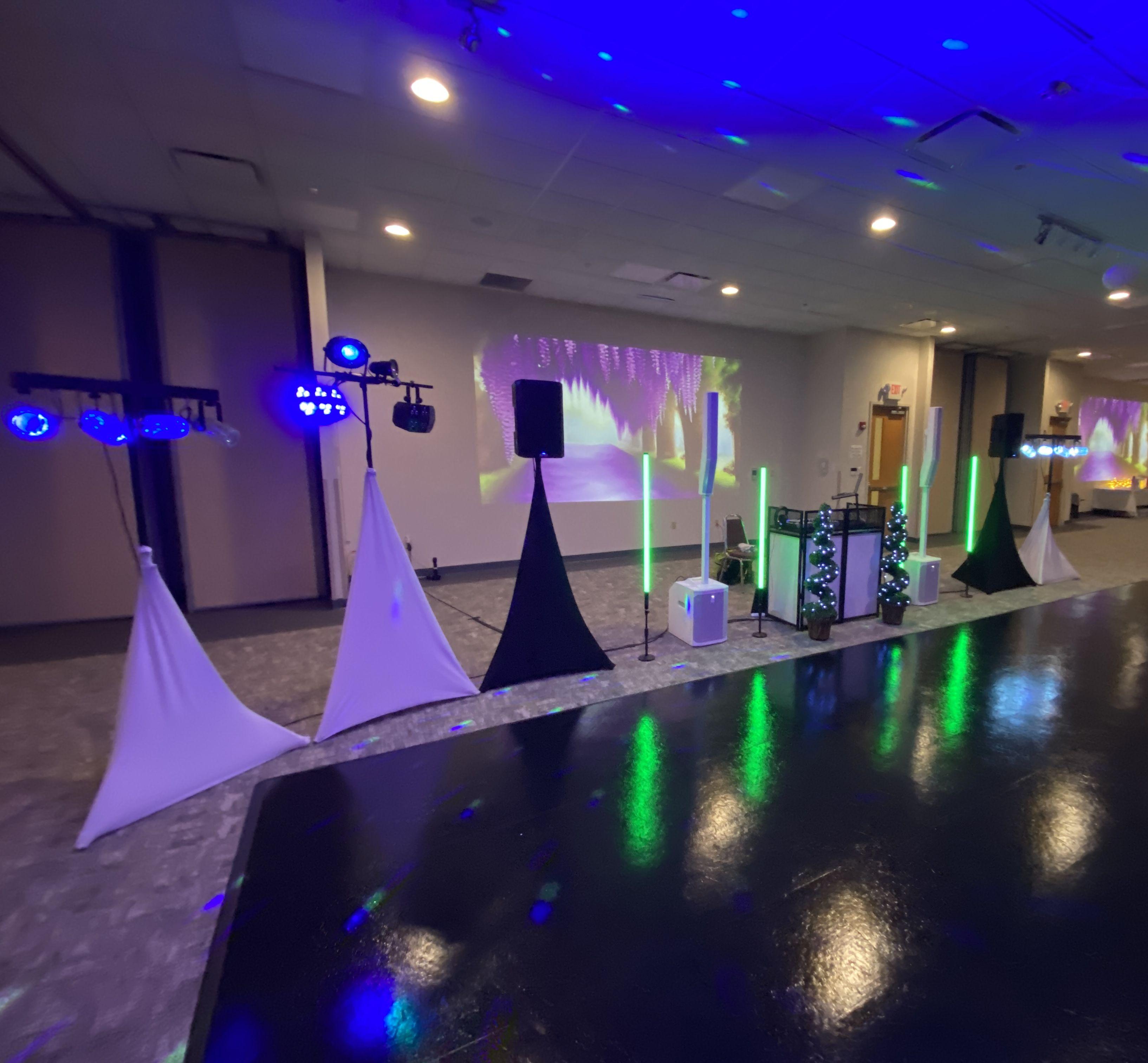 This is the most popular package. It has dancefloor lighting and includes a great system and show for your event!