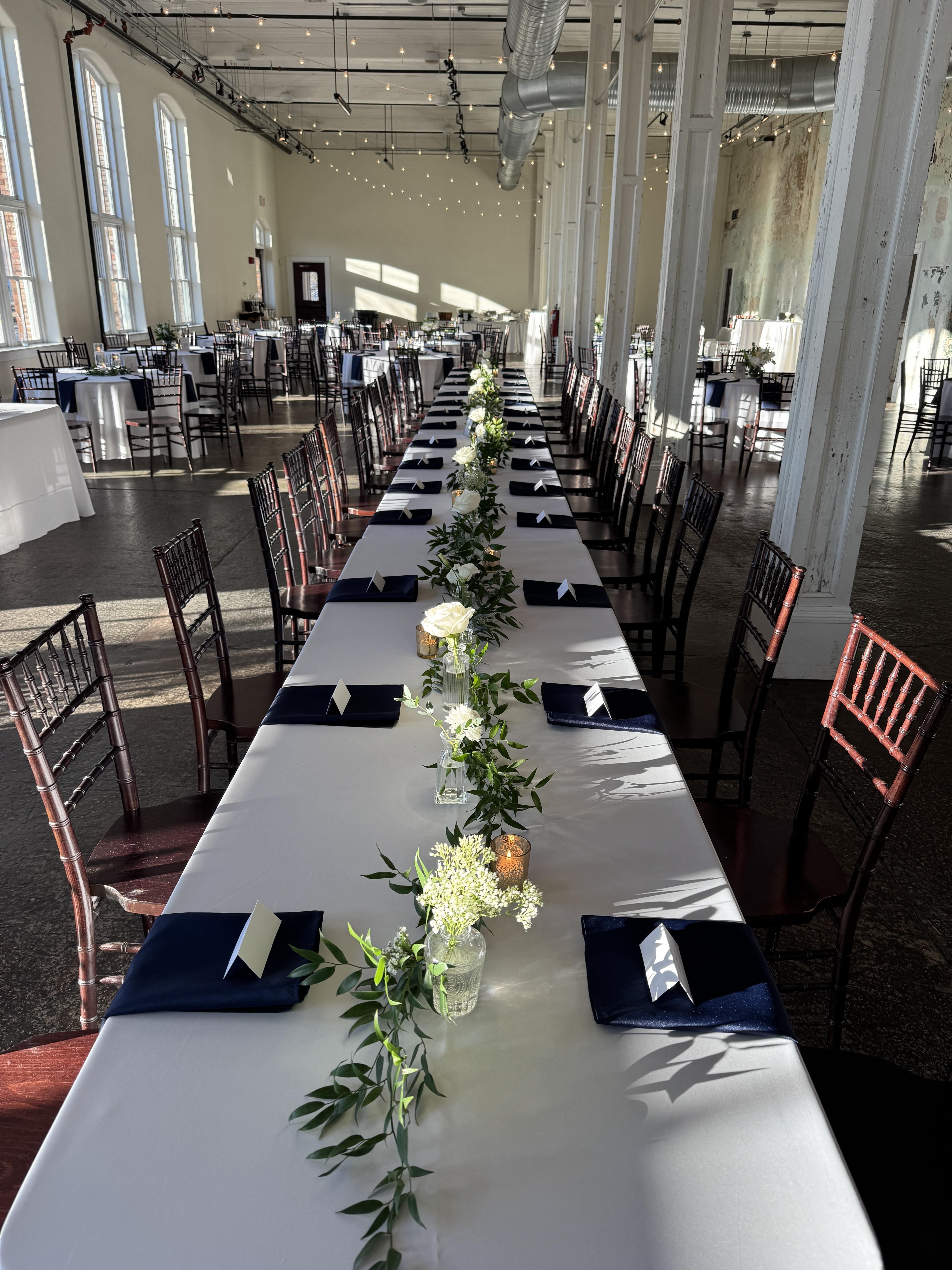 - Folding tables or cocktail tables with linens