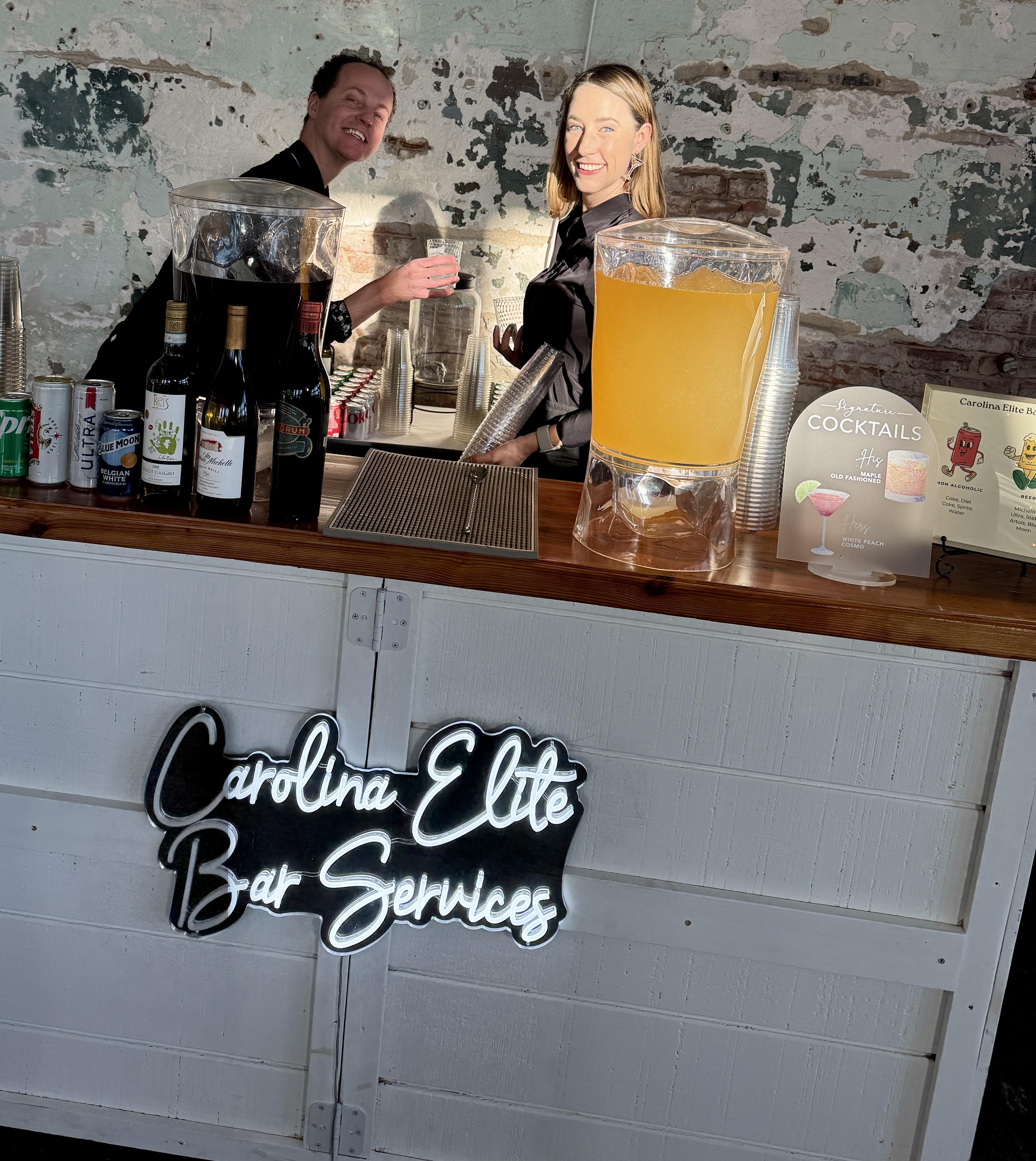 Carolina Elite Bar Services provided exceptional bar services for our wedding. Their communication throughout the planning process was clear, timely, and had great follow up. On the day of, their team was efficient, offered great customer service, and were friendly and hard-working. The signature cocktails they created were delicious and exactly what we wanted - our guests raved about how awesome they were. We were thrilled with the quality of their work and the value they provided. They truly contributed to making our special day a success.