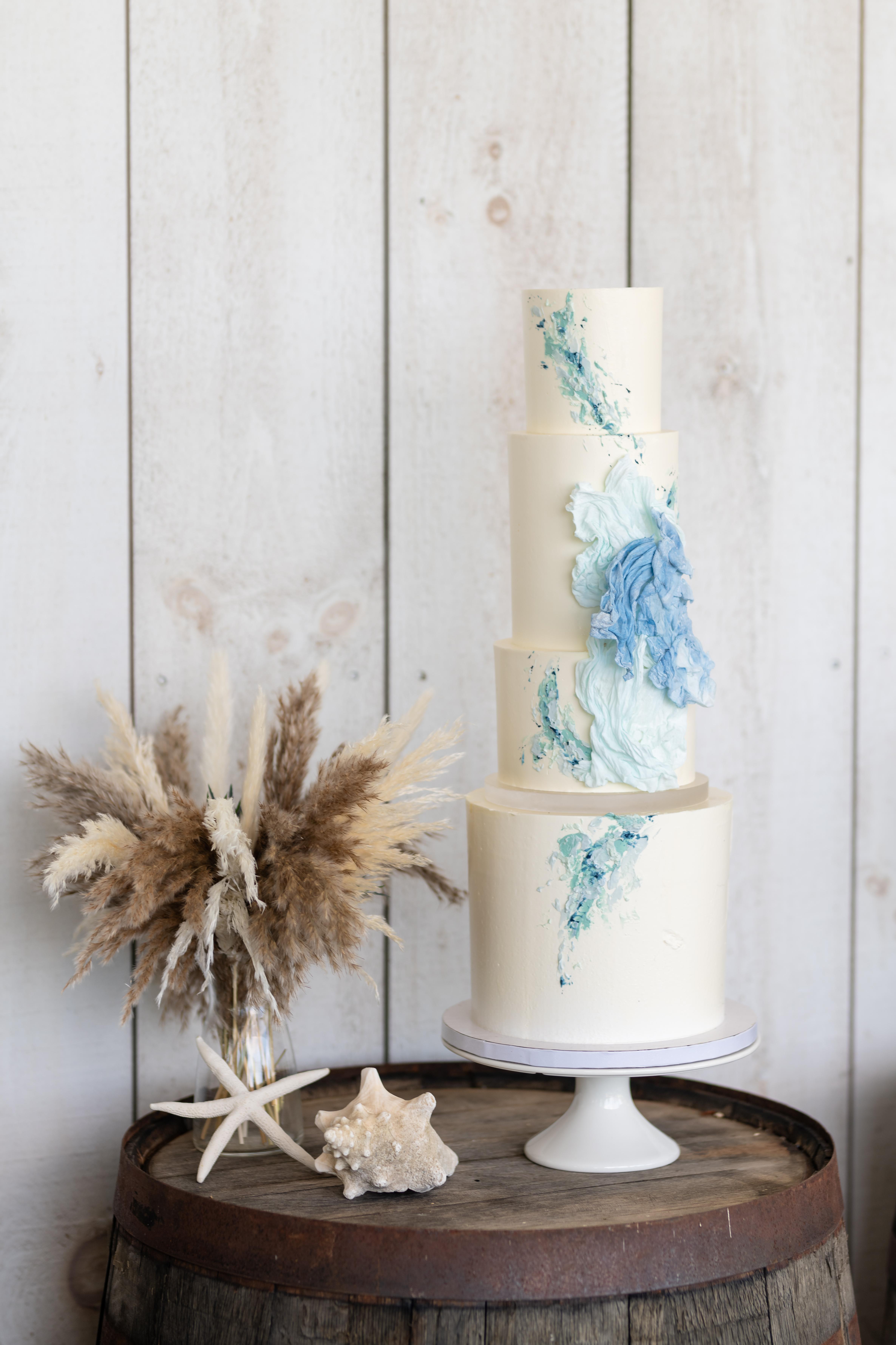 I create traditional-style wedding cakes, but I shine in more artistic and creative designs. Colors and textures are my playgrounds, and flowers and structures add to the fun! I have a wide and ever-expanding range of decoration techniques. Let me design a cake to complement your beautiful wedding!