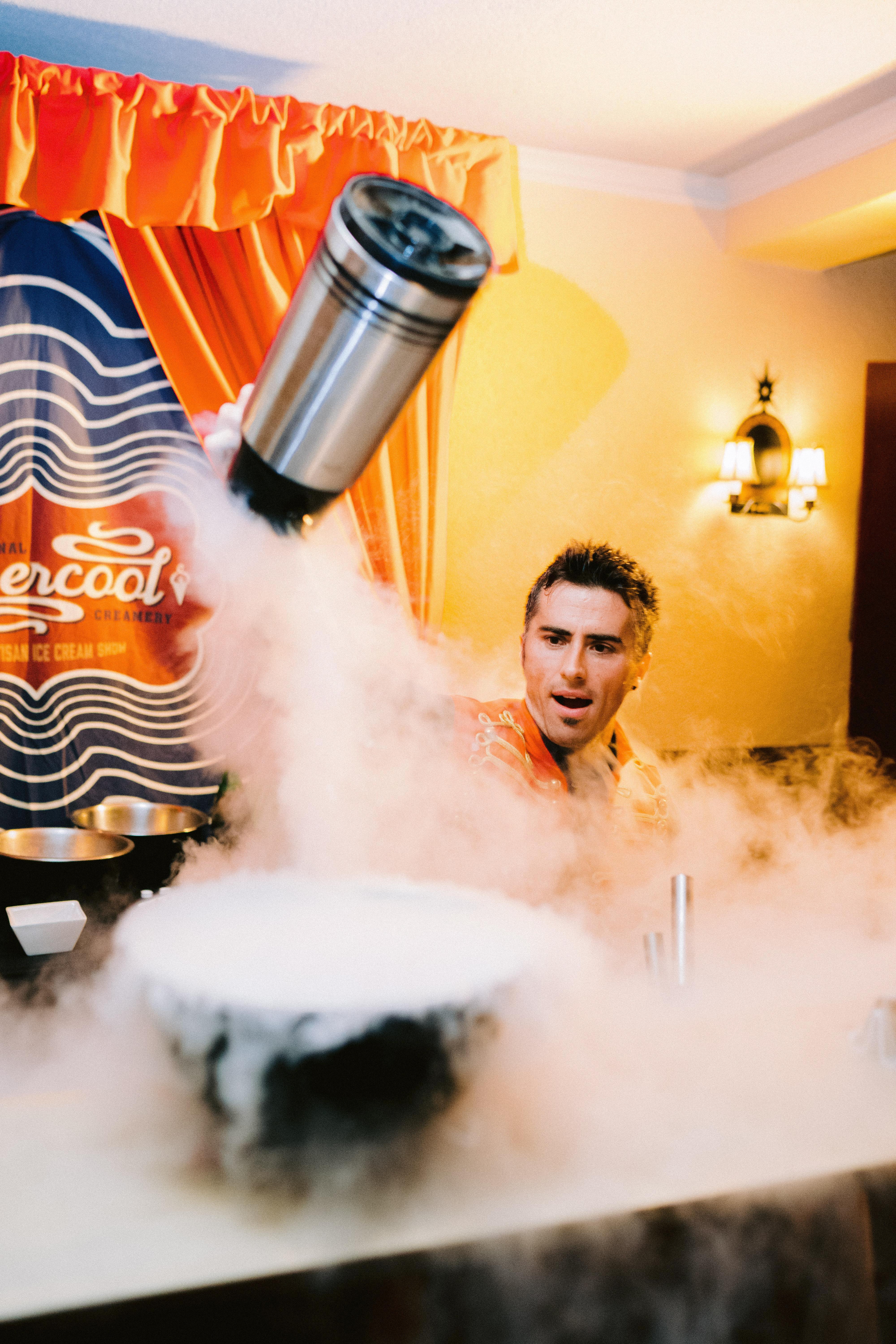 We make ice cream and other frozen treats right before your very eyes with no electricity or freezers. Smoke flies as our Nitro Artisans use liquid nitrogen to freeze you ice cream concoctions right on the spot. Made to order! What really sets us apart is our performace style and professionalism. It's like entertainment , party aesthetic, and dessert wrapped into one. A truly unforgettable touch that your guests will never forget. Differentiate your wedding with SuperCool Creamery's Nitro Artisan Ice Cream Show!!