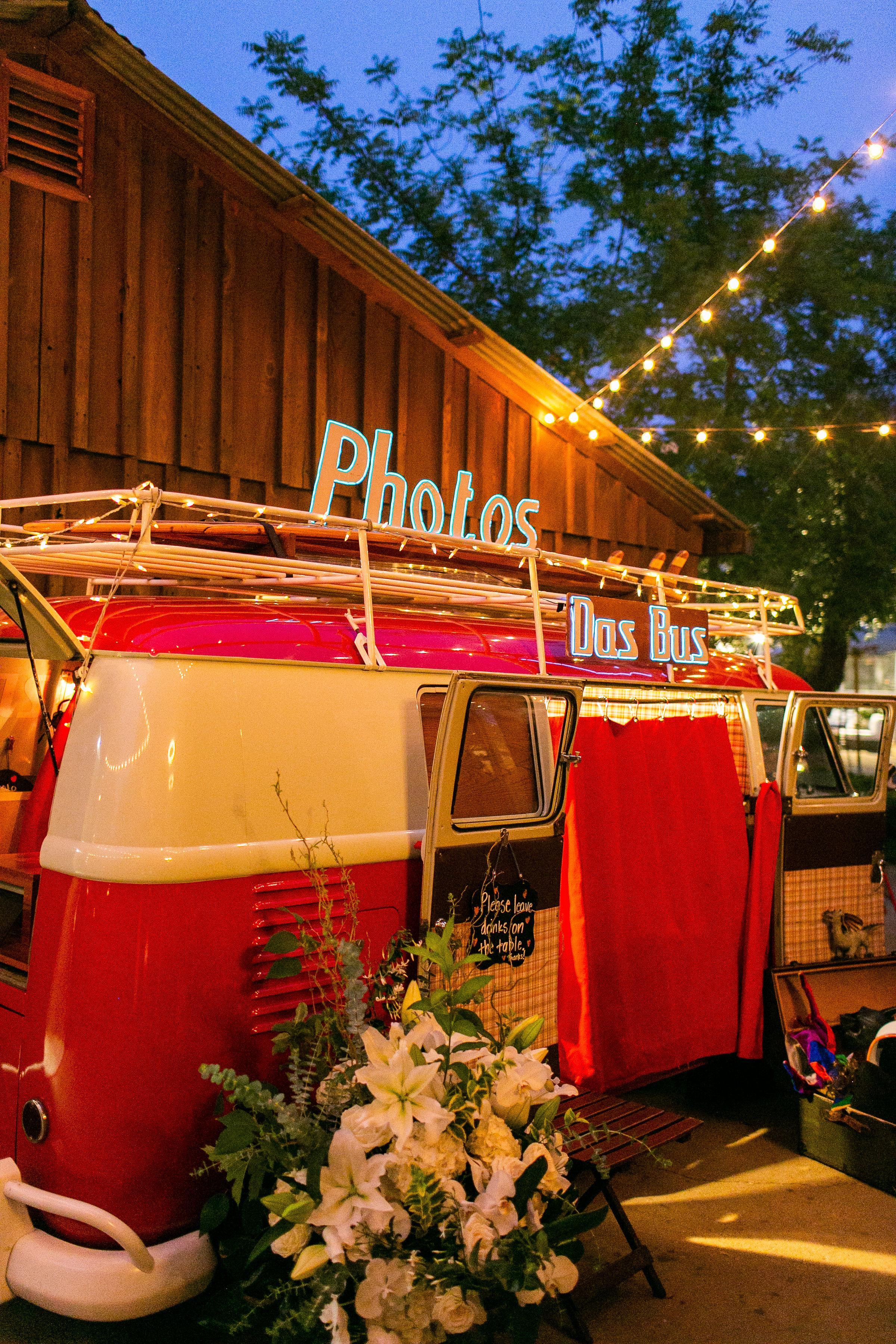 The Das Bus photo booth sits within our beautifully restored 1959 and 1966 vintage Volkswagen buses with custom wood interior, plush comfy seating, and a premium photo booth that prints your finest moments into personalized keepsake photo strips.