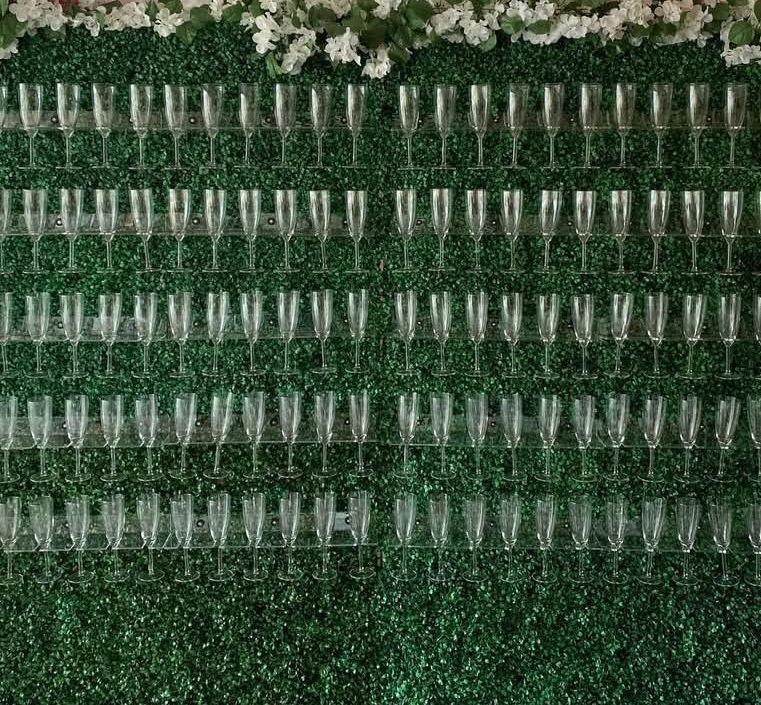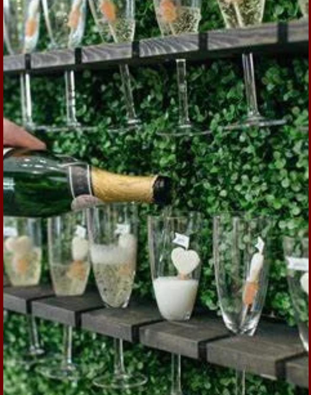 Our Champagne Toast Wall is a stylish rental feature designed to elevate any celebration. Perfect for weddings, birthday parties, graduations, baby showers, and corporate events, the wall holds champagne glasses (and can also be customized to display fruit or dessert cups). It adds a unique, interactive touch that makes guests feel welcomed and creates the perfect backdrop for photos. With flexible rental options and a design that blends elegance with fun, our wall is the detail that takes your event from ordinary to unforgettable.