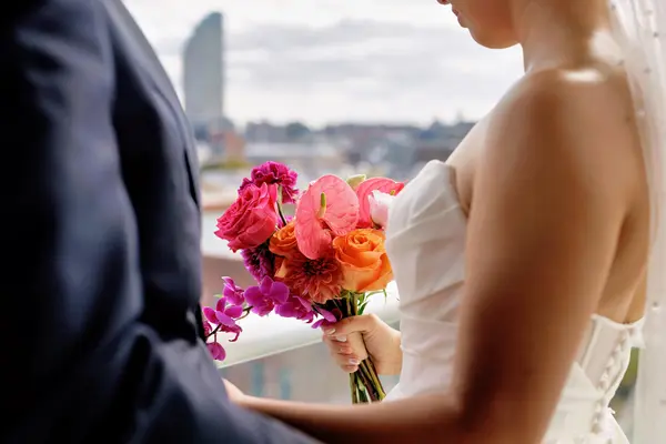 Perfect for intimate weddings, courthouse celebrations, or elopements. Includes: Bridal bouquet (seasonal & hand-tied in your chosen color palette) Groom's boutonniere 2 additional personal florals (e.g., bridesmaid bouquet + boutonniere or corsage) 1 ceremony arrangement (altar, arch, or pedestal-style) 1 sweetheart table floral arrangement 5 bud vase centerpieces with floral accents for guest tables Coordination call to review vision, colors & logistics
