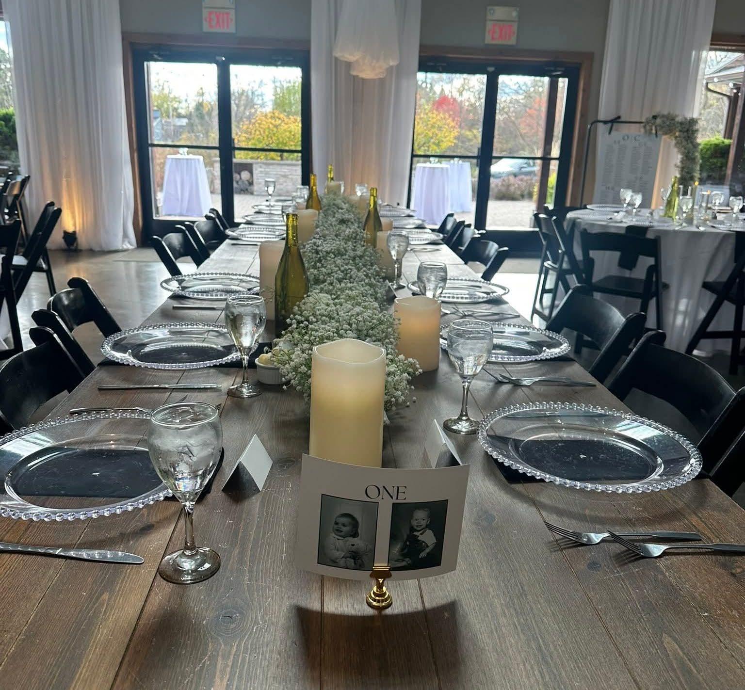 We are there to help take stress off of you and family. We start from day 1 with you not just day of so we get to know you and your vision. We also offer decor items from arches to candles and more that you can borrow for free when you book with us. we can buss tables and clean up during the night. we do several calls. In our showroom you can set up mock tables and use our inventory. I am type A & provide a flow chart with questions you may not have thought of. Open communication 24/7. Visit our website for reviews, specials & list of items we provide!