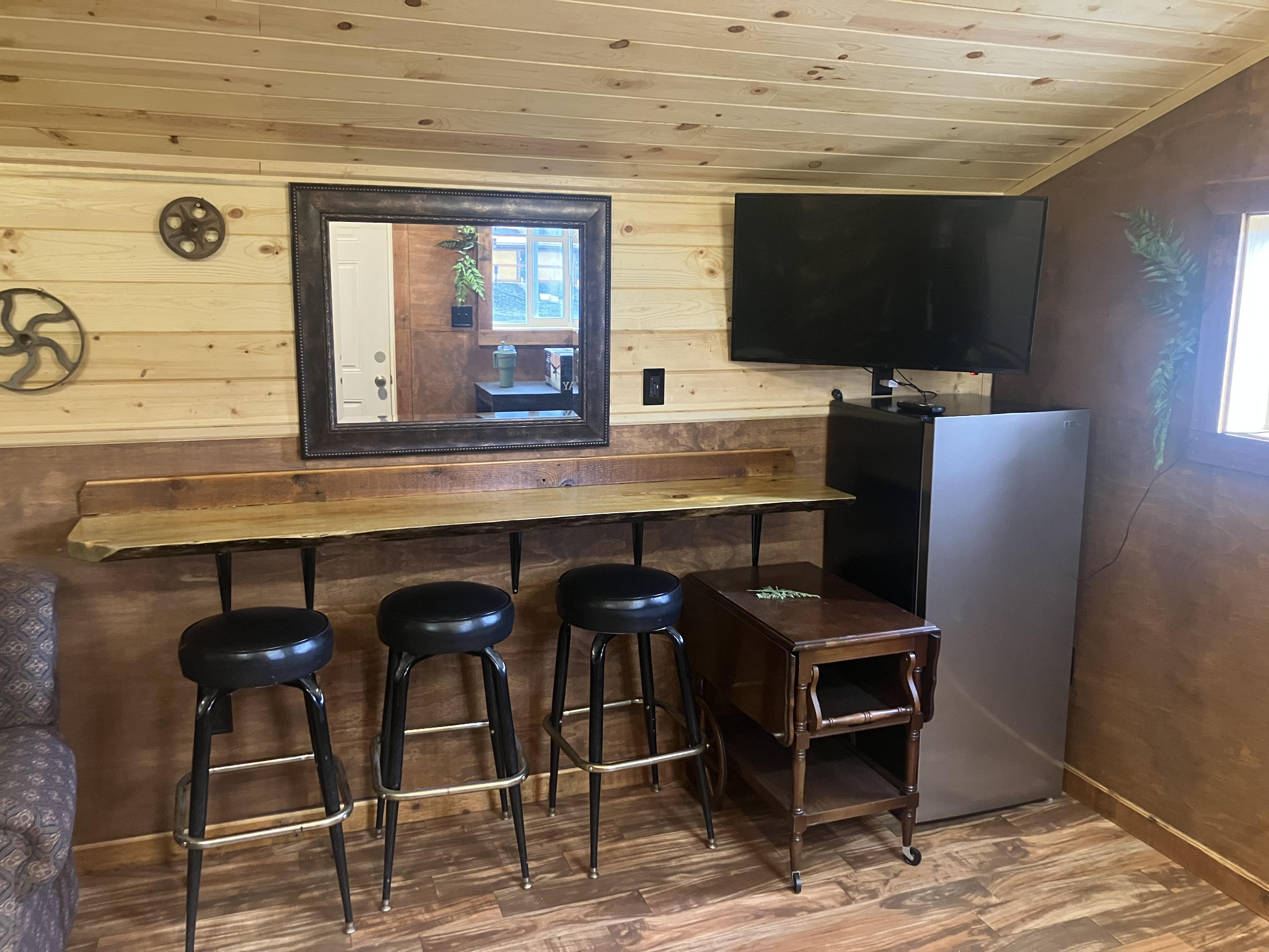 This fully insulated, heated and air conditioned suite is ready to use. It included a dressing room, seating, TV, refrigerator and bonus covered patio.
