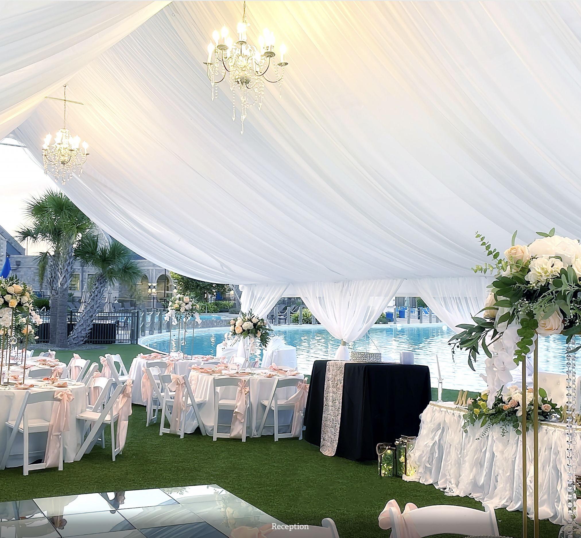 The starting price is for 50 guests and will increase depending on the total amount of guests. This package allows for full rental of the Castle Hall Clubhouse, as well as the outdoor locations including Serenity Beach, Paradise Palms Pavilion, and Celebration Lawn. These outdoor locations can be used for the Ceremony and Cocktail Hour locations before the Reception.