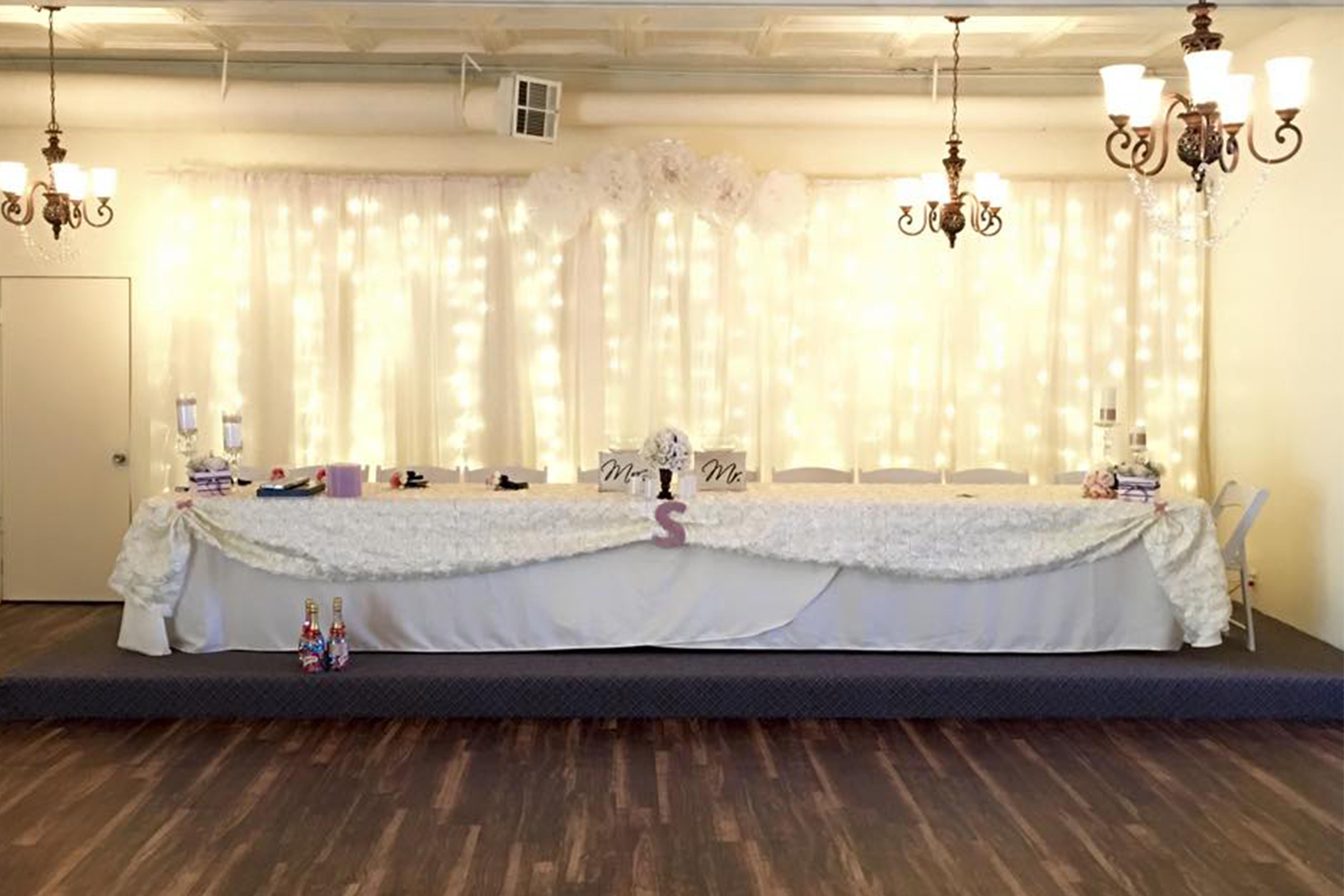 This is a great space for a smaller ceremony, reception, or even an after-party. Hanging from the beautiful, historical titled ceilings are gorgeous chandeliers. Space also includes a slightly lifted stage area. Great for an alter or a head table This space is perfect for the most intimate weddings.