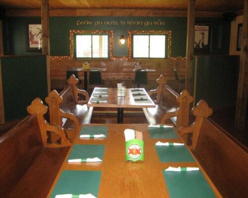 Our Guinness SNUG is a quaint semi-private room just a few steps away from our Main Bar. The SNUG features a 55” TV, speakers from our main stereo with volume control, booths and church pews. The room is private for your group. It is used weekly for birthdays, showers, meetings, luncheons, dinners, sports events and many more celebrations.