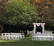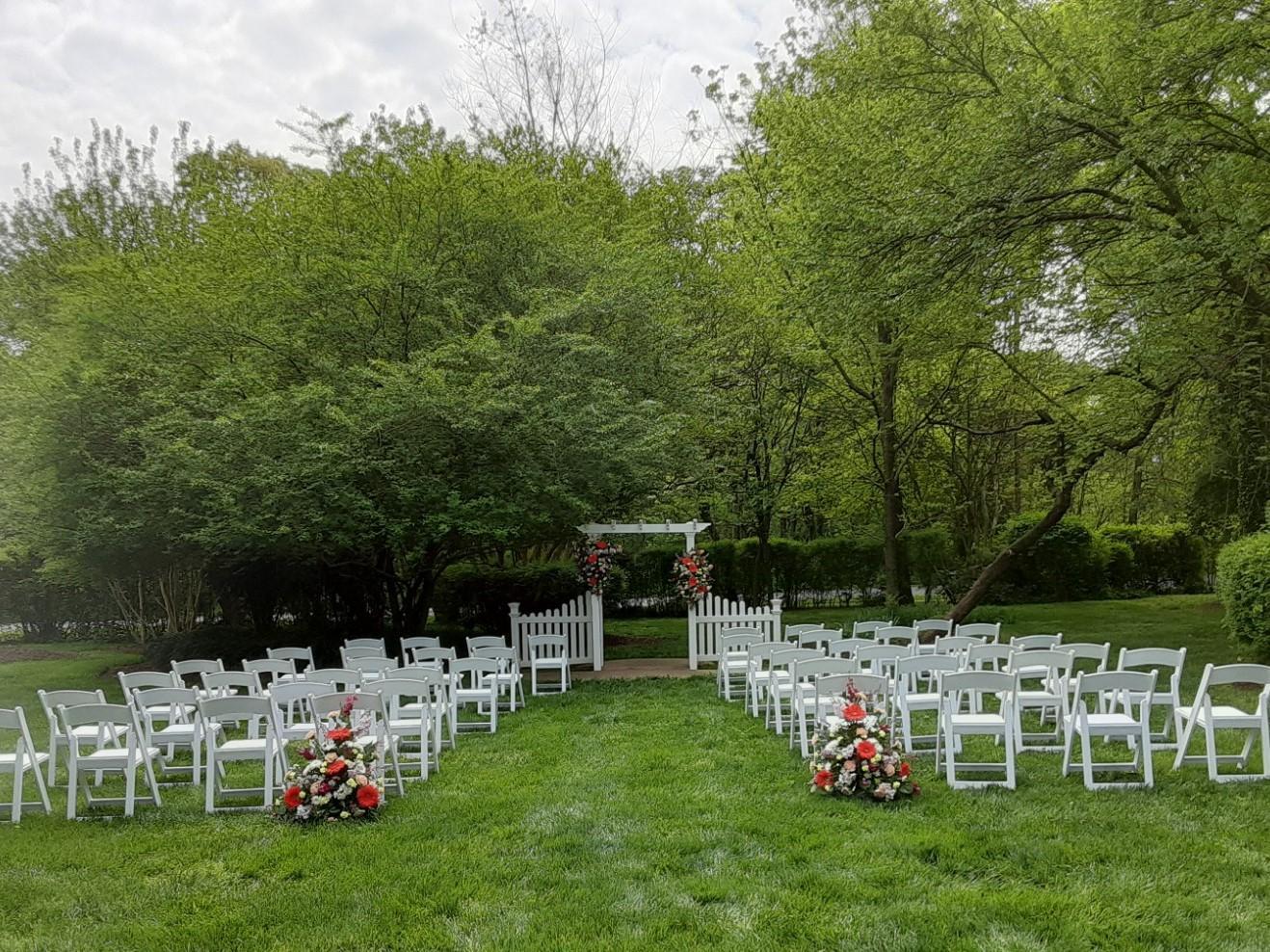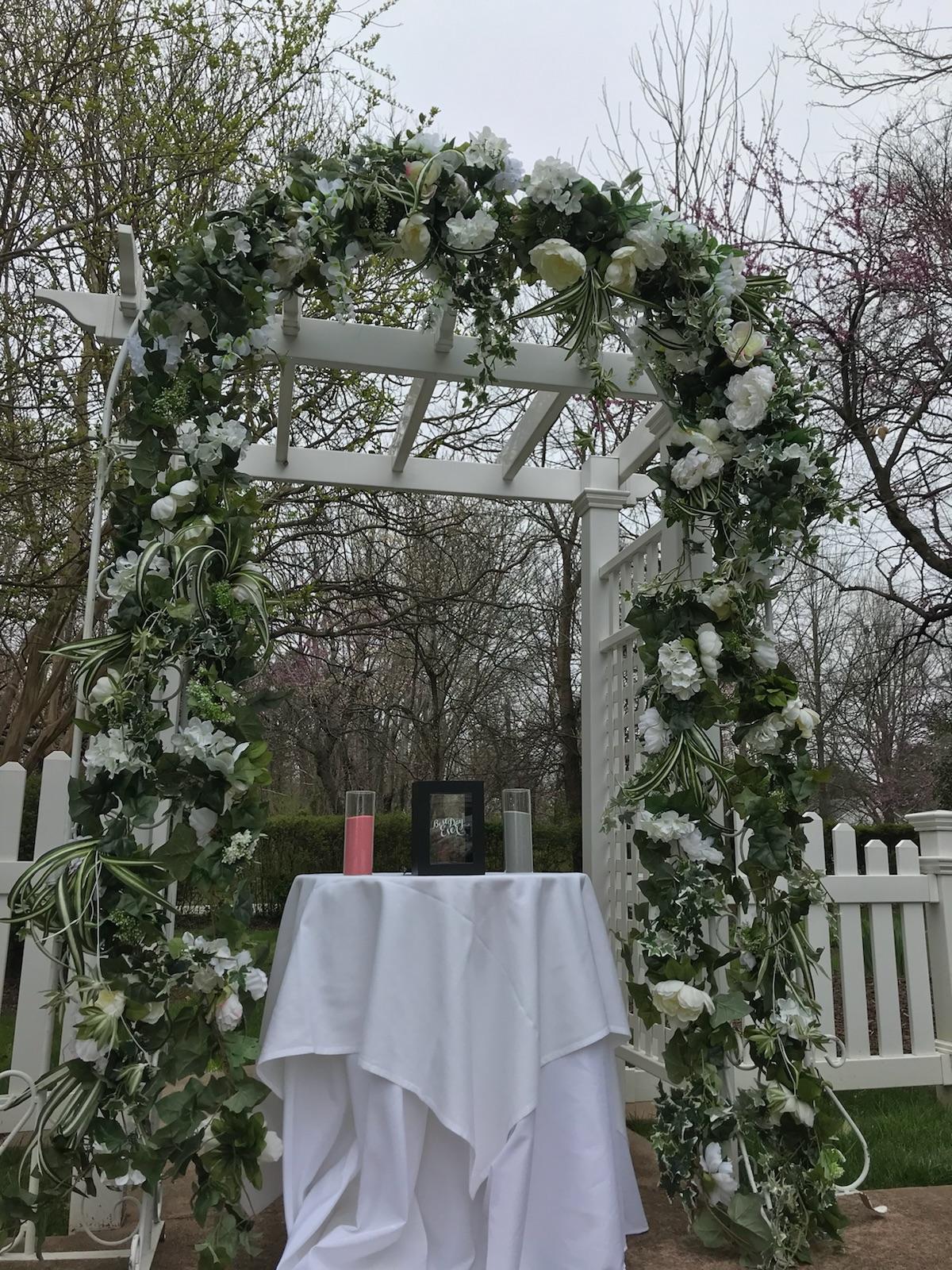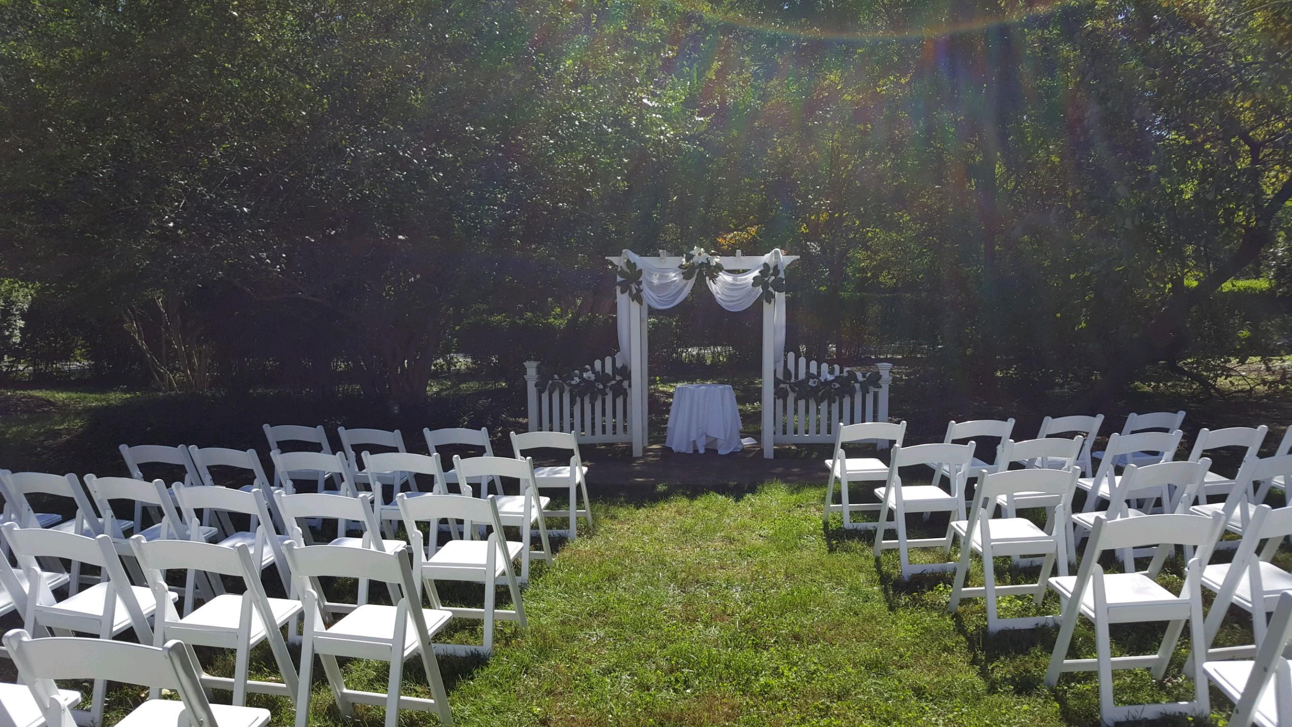 Arbor w/tuille Chairs Shepherd Hooks Program and Music Table