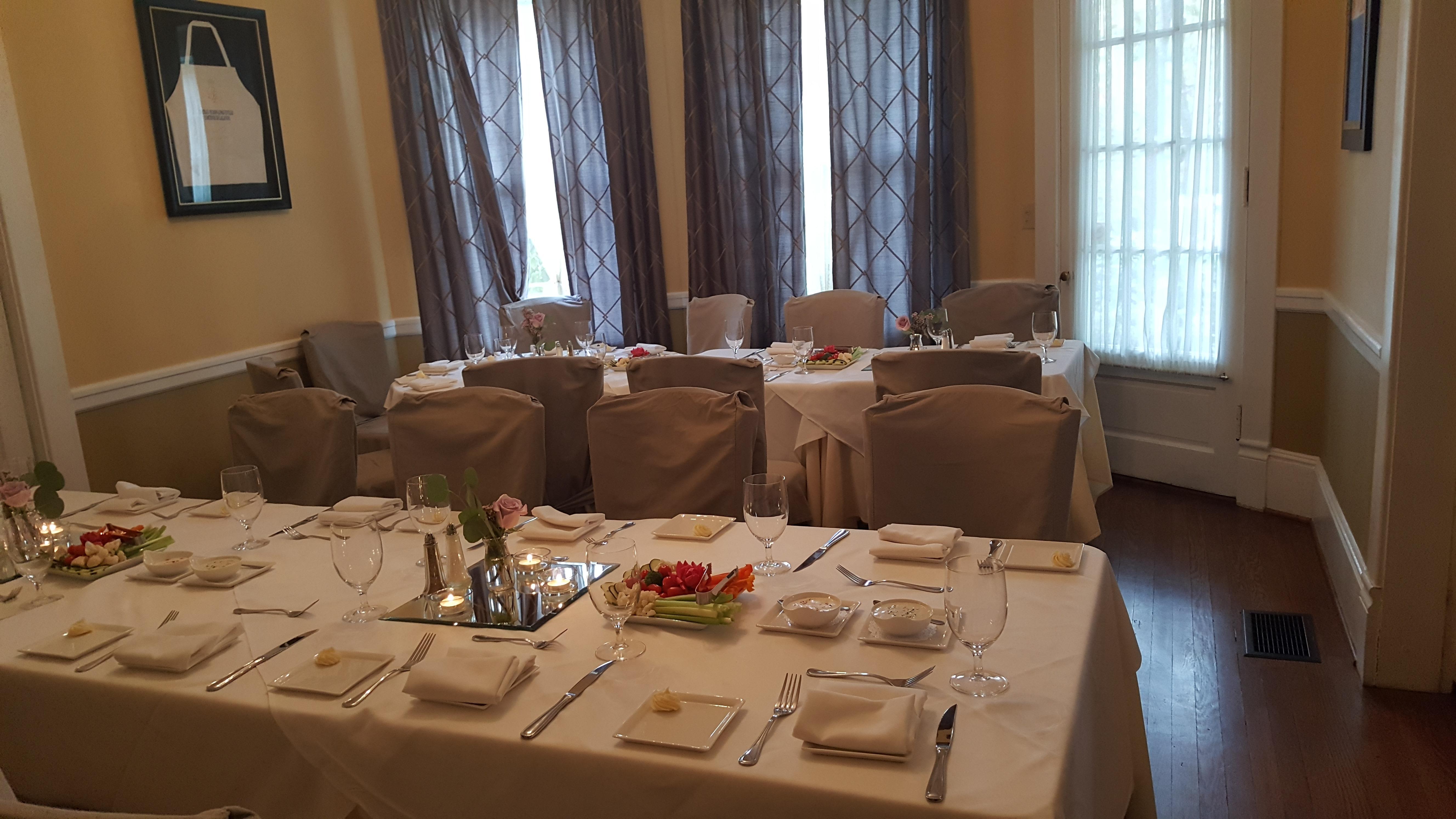 Spacious wrap around veranda or intimate dining room in the historic manor lend themselves to any type of small event.