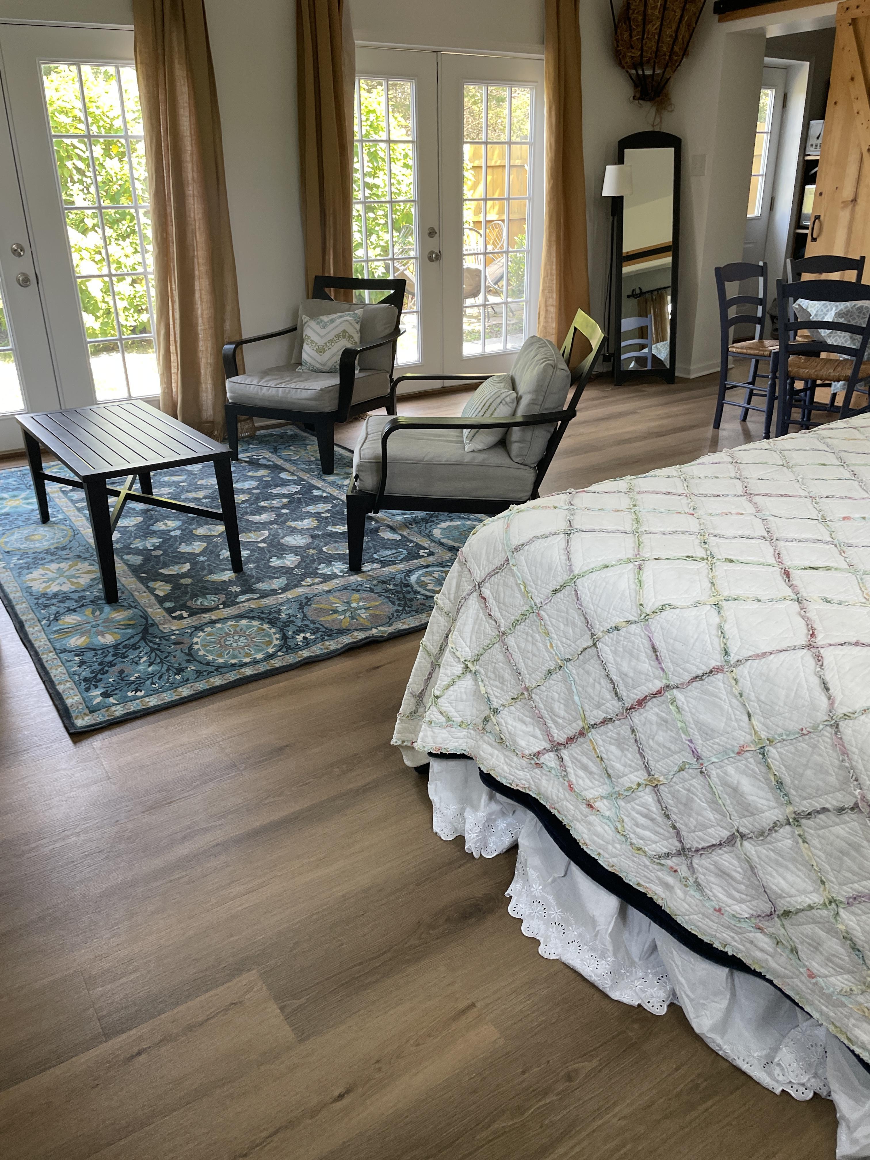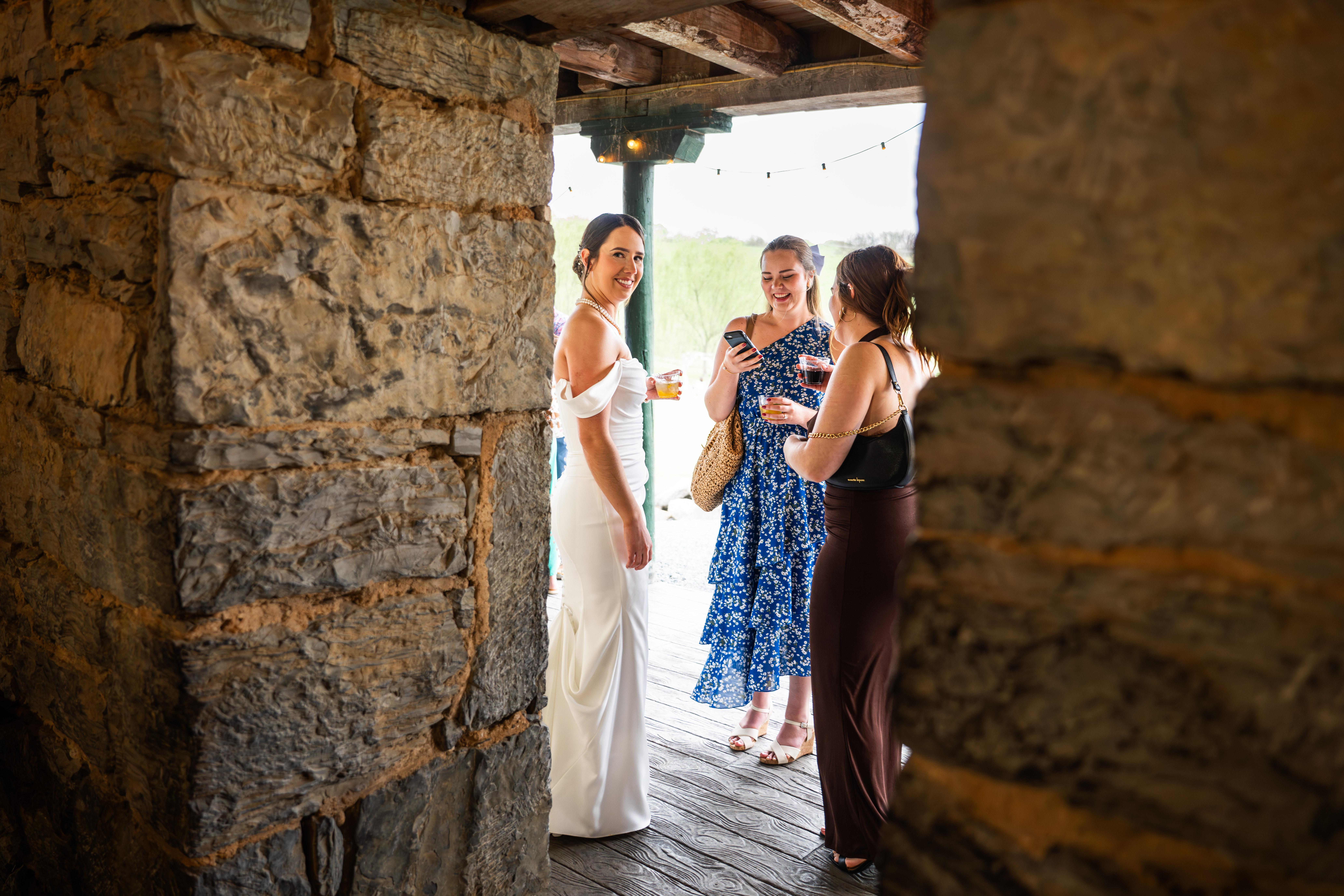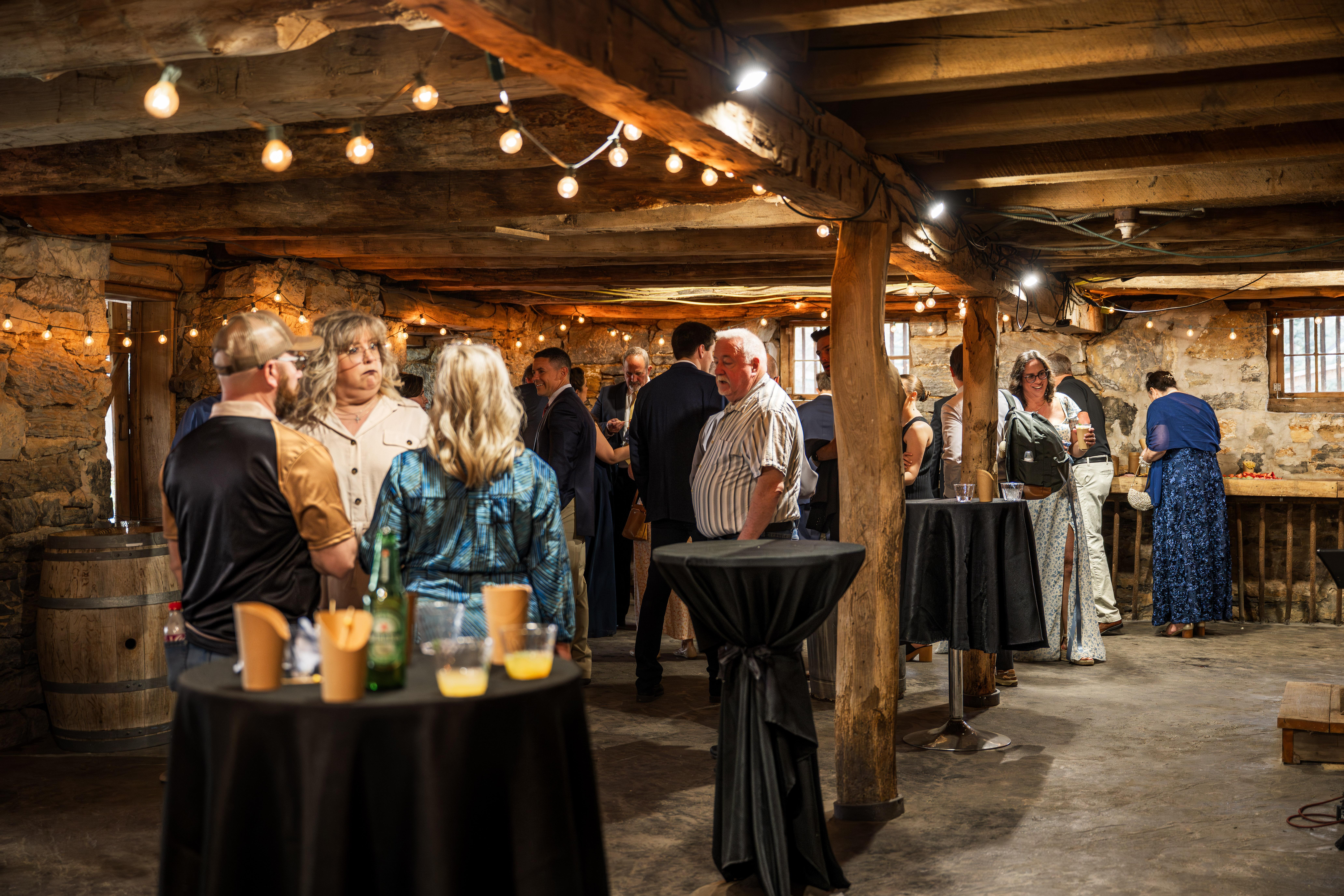 New in 2022, the finished concrete floor provides an outstanding addition for those who want to have a pre- or post-ceremony option in addition to dining area, or it can be used a rain option for ceremonies. The bank of the barn features stone chiseled by artisans in the 18th century to provide an elegant experience for all to experience. Though most often used as accessory location for cocktails, many find it reassuring as a rain option.