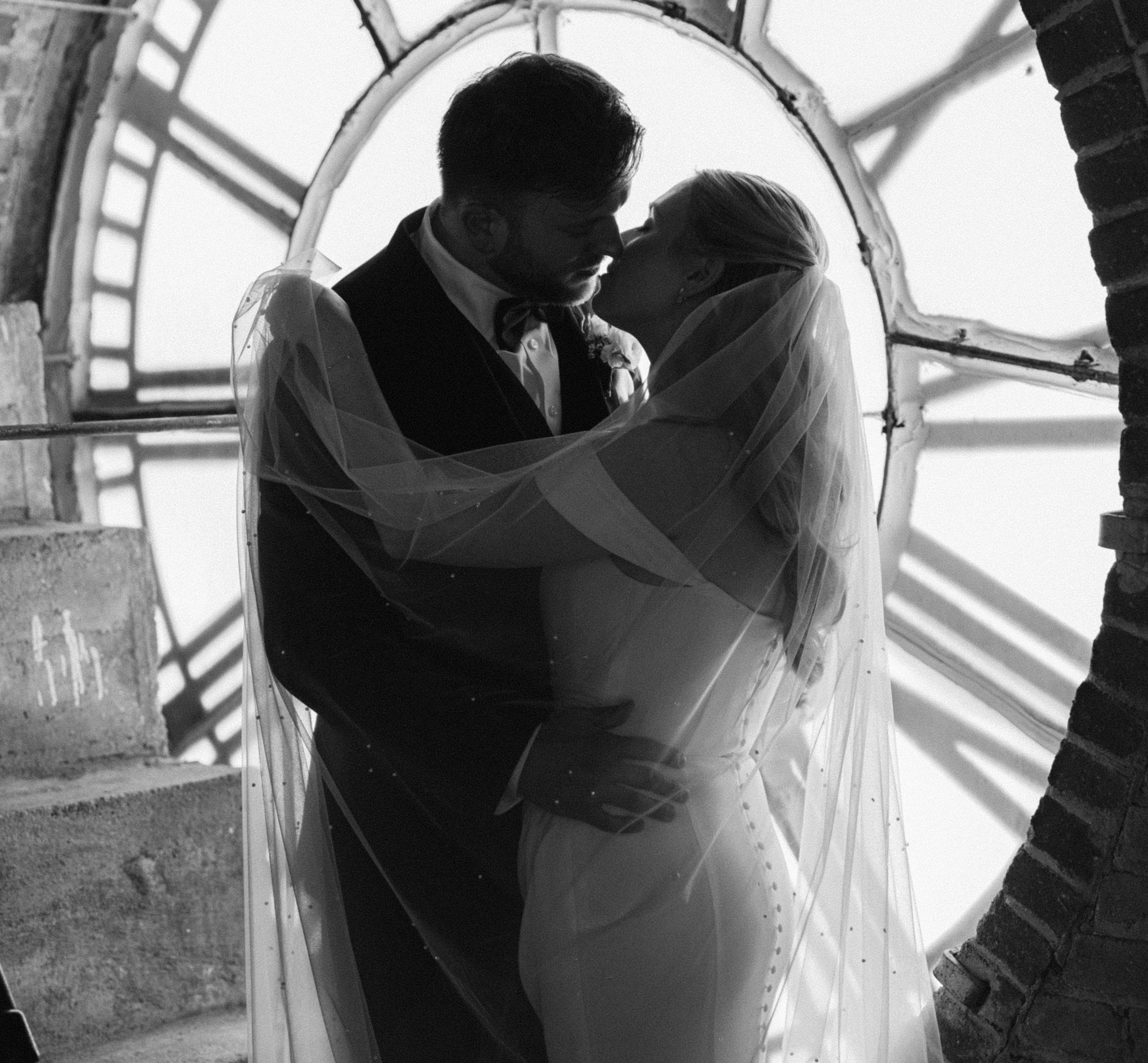 Stunning black and white, urban historical industrial space.