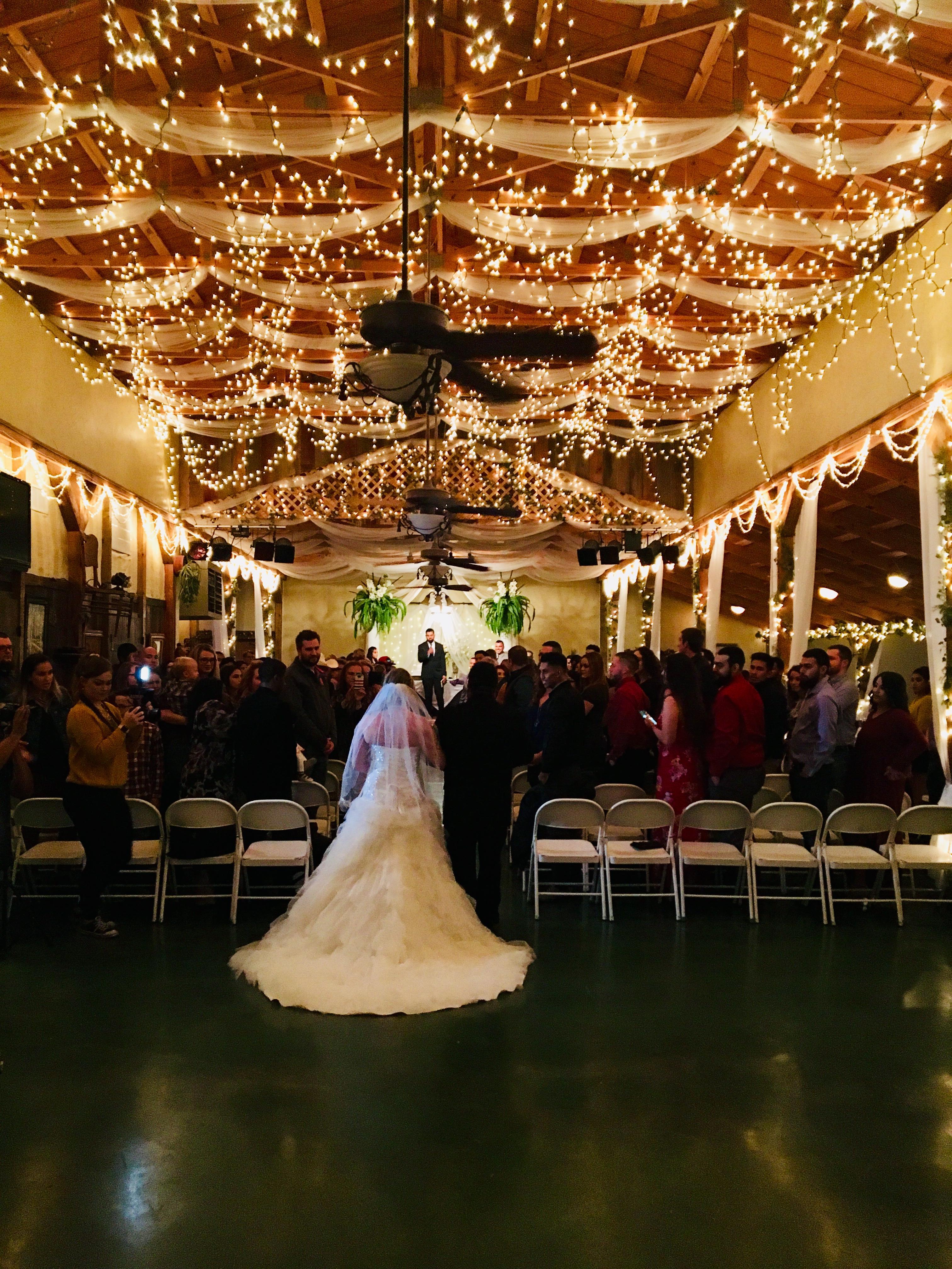 Set on 80 acres, complete with holly hocks and rose pergolas, gazebo and jasmine covered arches, the twinkle light gardens set the romantic feel for your wedding ceremony and pictures. We also offer a fully decorated old barn which has been modernized with air conditioning, twinkle lights and white sheer drapery providing a great setting to say “I do”. There is a gorgeous bridal room and grooms room with plenty of antique mirrors, a bar area with antique liquor buffet, and catering area.