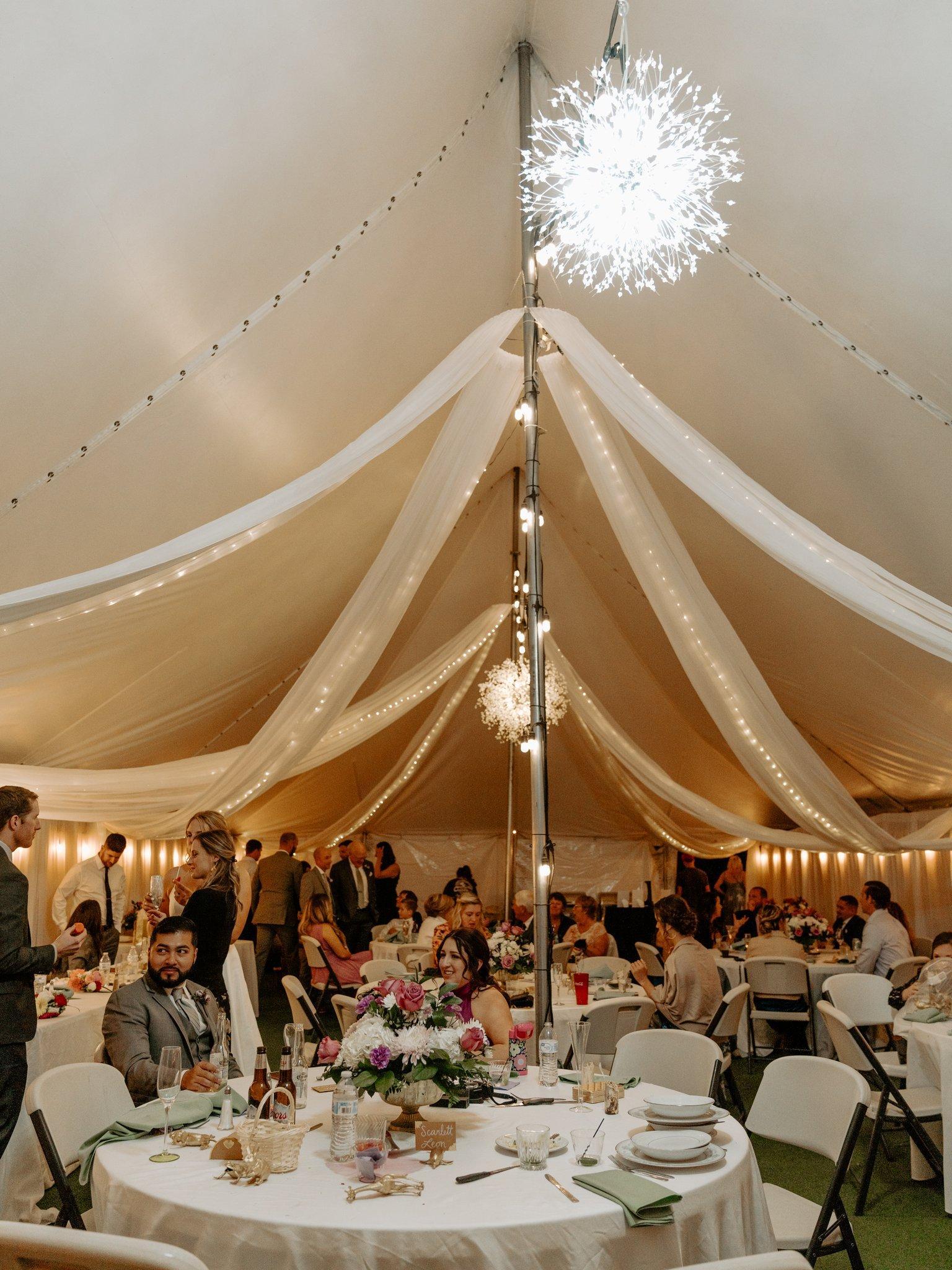 Twinkling fairy lights swooping up to sparkling chandeliers give off a dreamy glow that is perfect for your event...
