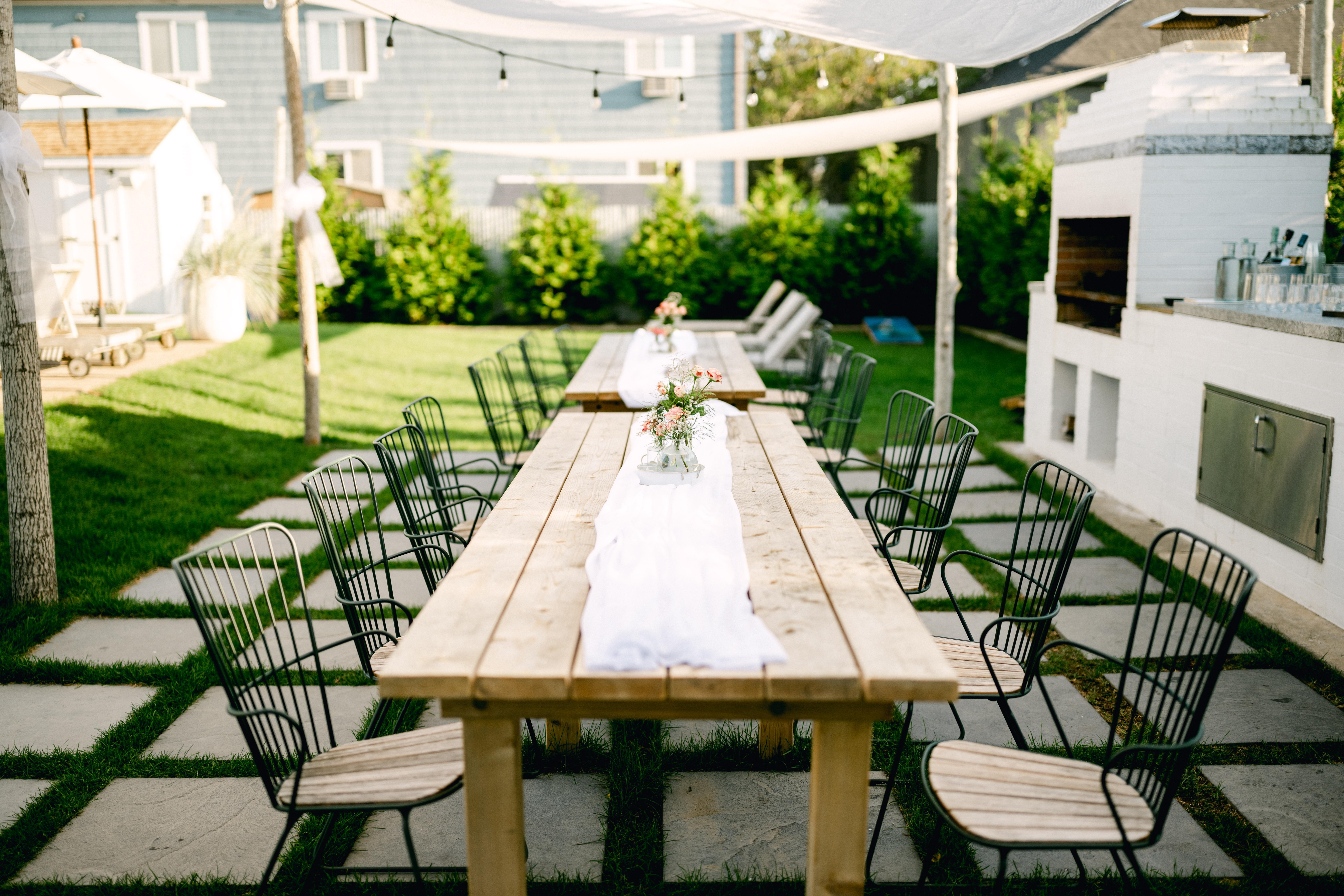 Celebrate your special day on our back patio at The Albatross, where charming flowers, a pergola, and a cozy, carefree vibe make it feel just right.