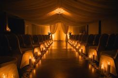 Our second floor is dedicated to Elysium's Wedding Chapel, Weekday Pop-up Wedding & Vow Exchange. Designed for 120 guests, you will be amazed by the luxurious details of our chapel. It has beautiful ivory ceiling draping with a gorgeous crystal chandelier that one would expect at a lavish wedding. Pearl and gold urns flank the alter, with an ivory backdrop of chiffon for the perfect wedding portrait.