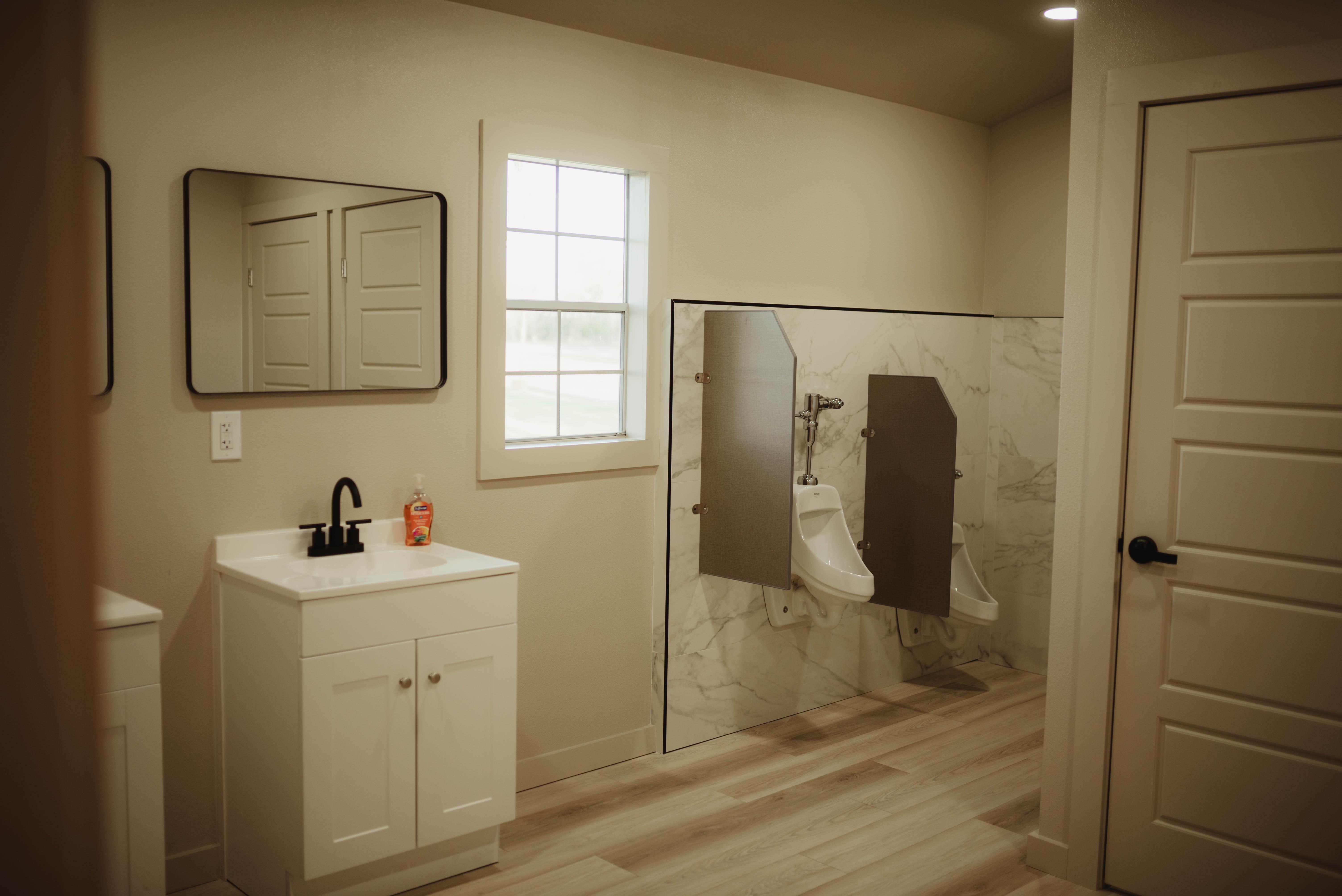 Our venue bathrooms offer the comfort and convenience your guests deserve. Featuring modern fixtures, spacious layouts, and elegant finishes, they’re built to handle large events while keeping a clean and stylish atmosphere. With multiple stalls, urinals, and vanities, your friends and family can enjoy the celebration knowing every detail has been thoughtfully prepared — right down to the restrooms.