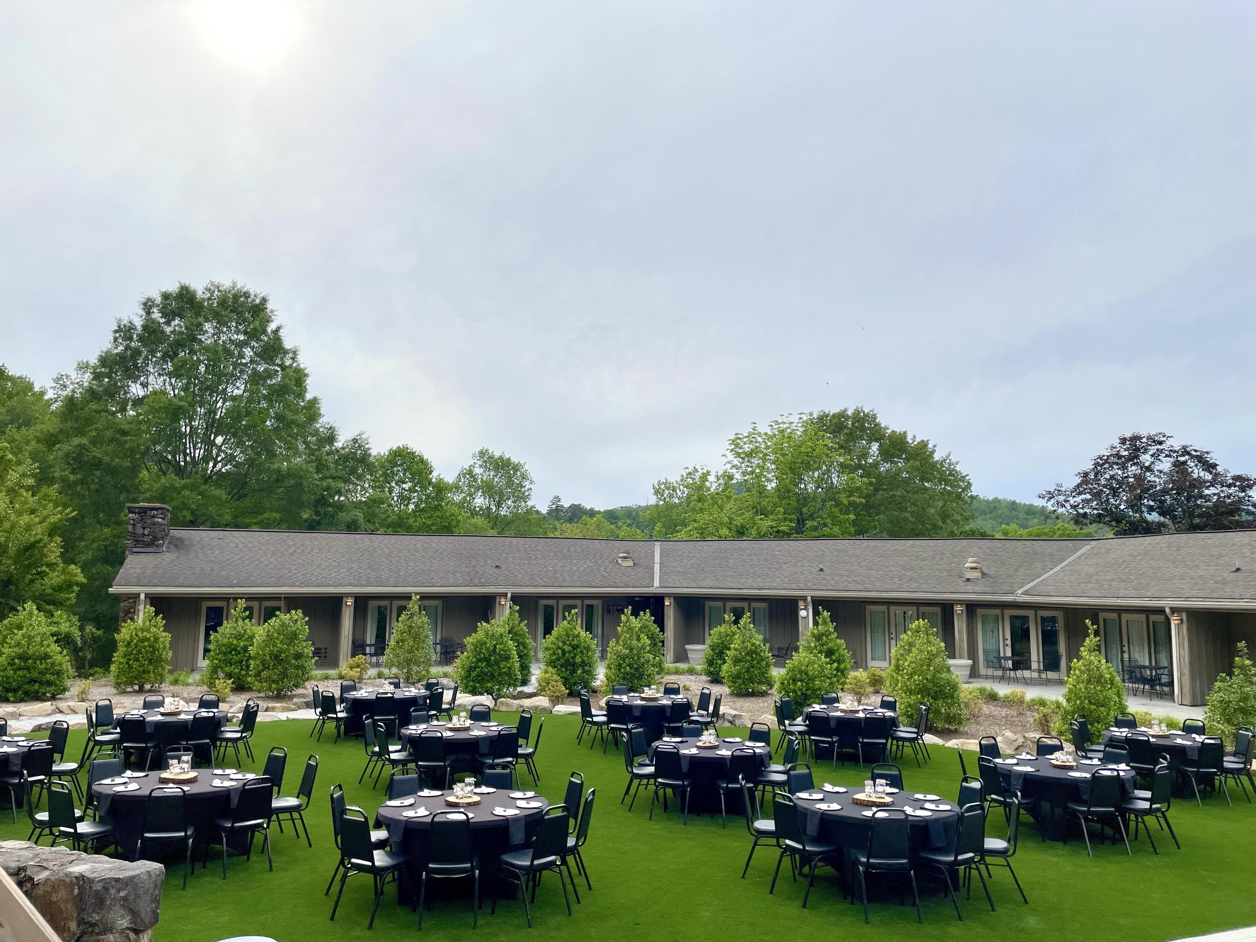 With beautiful vistas and fresh mountain air, the Sundeck is an outdoor venue in North Carolina. Adjacent to the Events Hall and the Dogwood Suite, it’s the perfect outdoor add-on to either of those spaces or as a stand-alone location for your event. It can be rented privately or in conjunction with the Hall. This open air deck is surrounded by mountain views and is conveniently located in the center of the village, making it an ideal choice.
