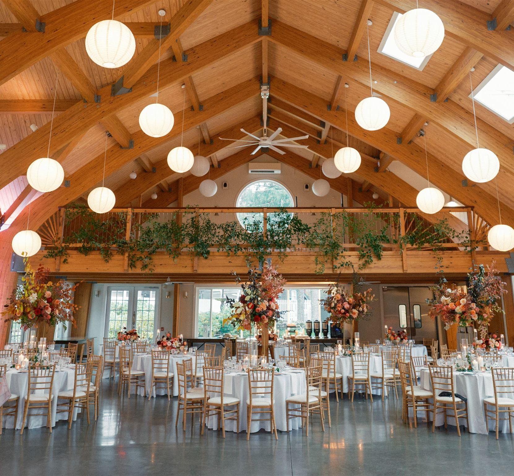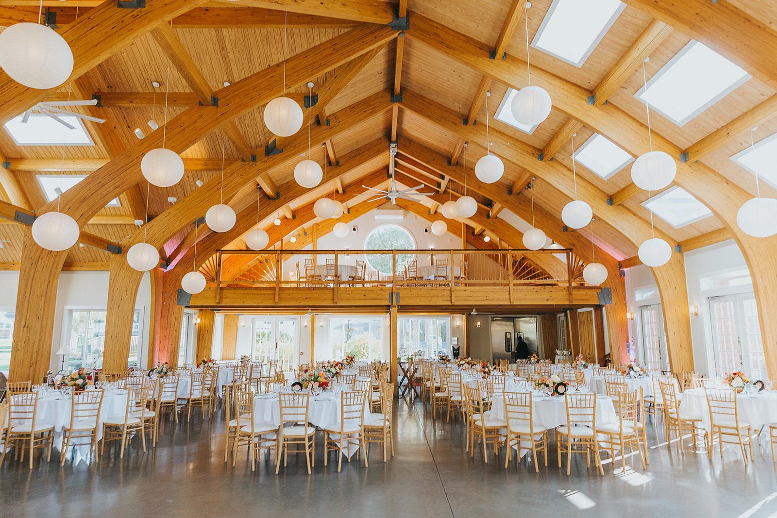 The Moondance Pavilion designed specifically for wedding receptions provides a perfect blend of rustic charm and modern amenities.