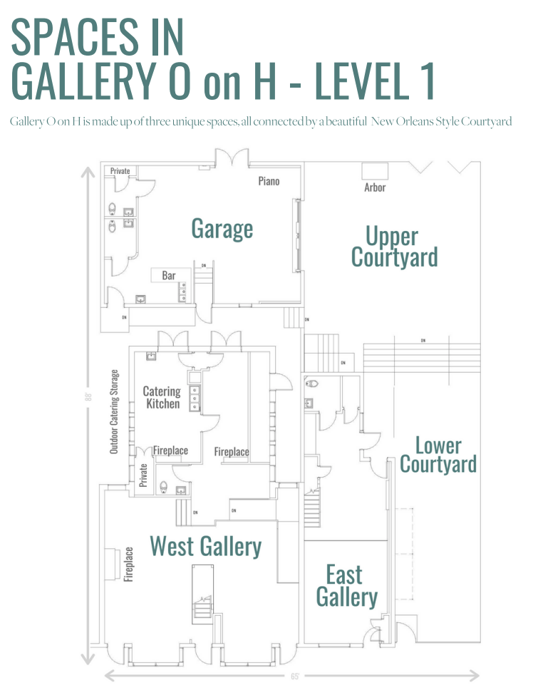 Gallery O on H is DC's most unique indoor-outdoor gallery and event venue. It is a space where art,music and the unexpected come together to honor the past and celebrate the present, delivering the authentic experience you were hoping to find for your wedding or event. Gallery O on H is located in the Atlas District Arts and Entertainment neighborhood in the 1300 block of the historic H Street corridor. The venue smoothly integrates the original East Gallery with the newly renovated West Gallery and Garage, all connected by the beautiful Courtyard.