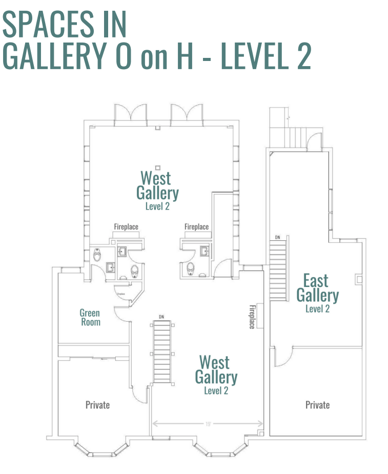 The newest addition to Gallery O on H, the West Gallery is the perfect space for an intimate reception or dinner. The original details of the space, lovingly restored during the renovation, make this a truly unique space.The first floor includes a catering kitchen and an ADA restroom, and a permanent ramp.The second floor includes two separate spaces, two additional restrooms, and the Green Room, perfect for getting ready or for a quiet moment during your big day.