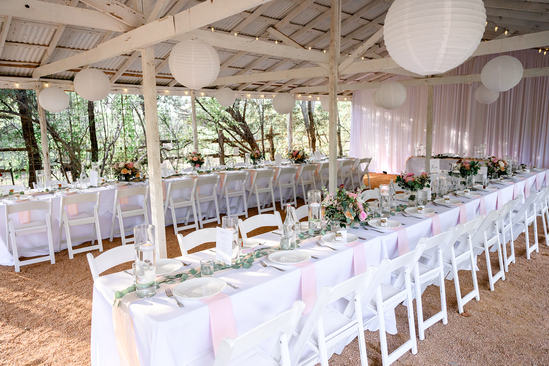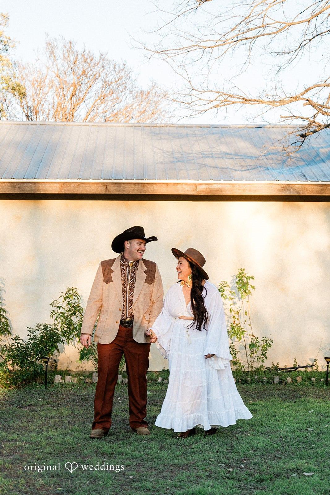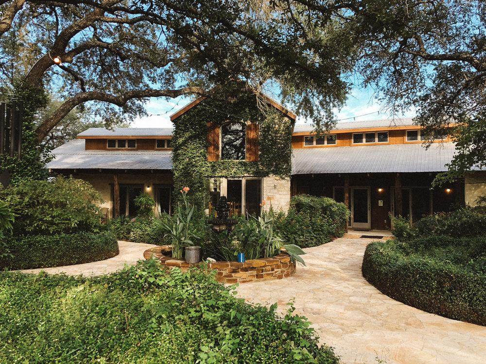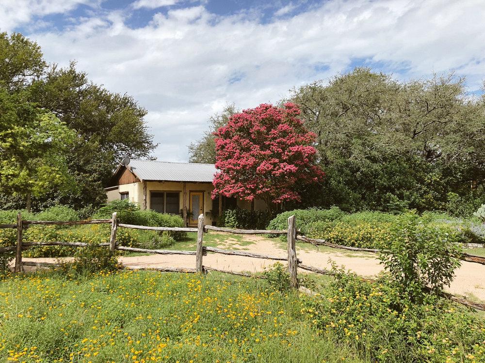 A charming meadow, covered barn, and rustic saloon for the perfect rustic Hill Country setting.