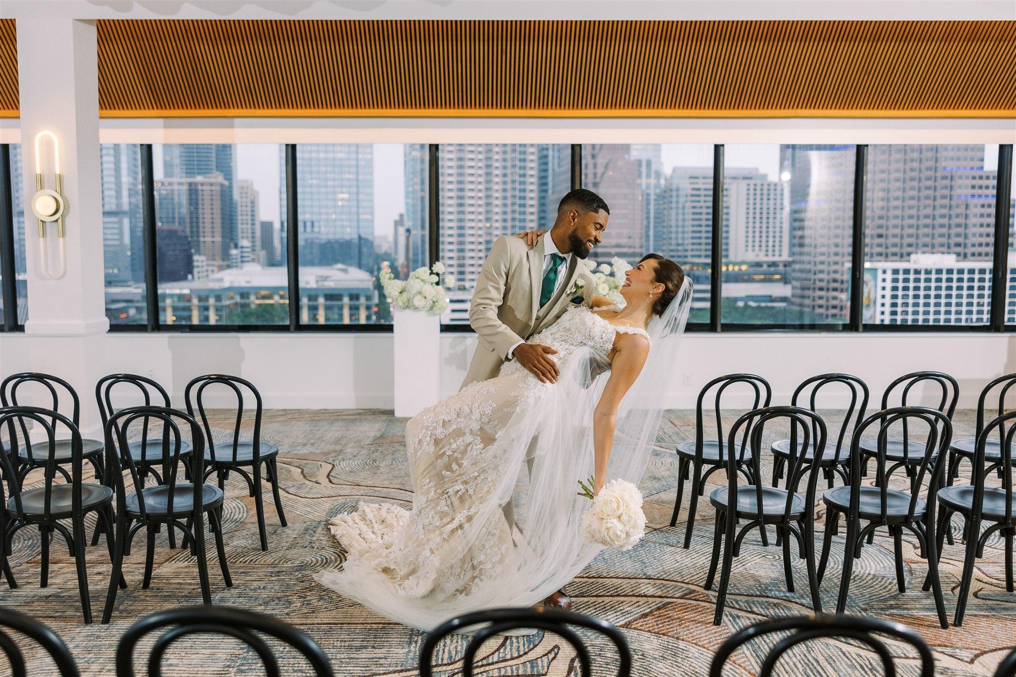 The Texas Ballroom at Hyatt Regency Austin offers more than just space, as the original home of the first-ever SXSW festival. This iconic setting invites your guests to celebrate surrounded by Austin’s eclectic spirit and vibrant culture. With flexible configurations and ample room to accommodate your unique layout, the Texas Ballroom is a versatile and memorable backdrop for your wedding celebration.