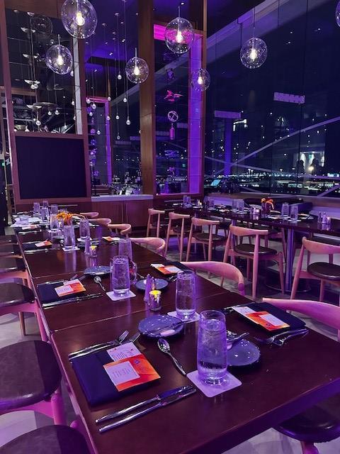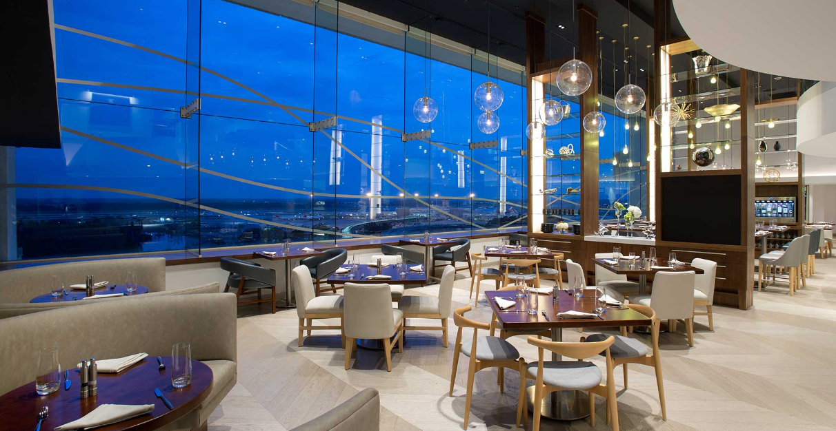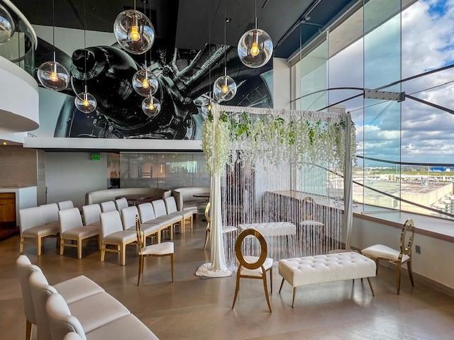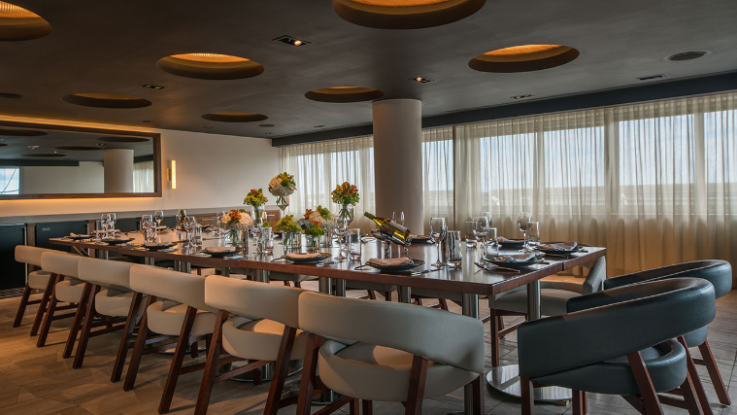 An elegant setting for meals, receptions, or smaller meetings with a view of the airport runway, the Hemisphere has floor-to-ceiling windows that drape the room with natural light and provide a one-of-a-kind experience.