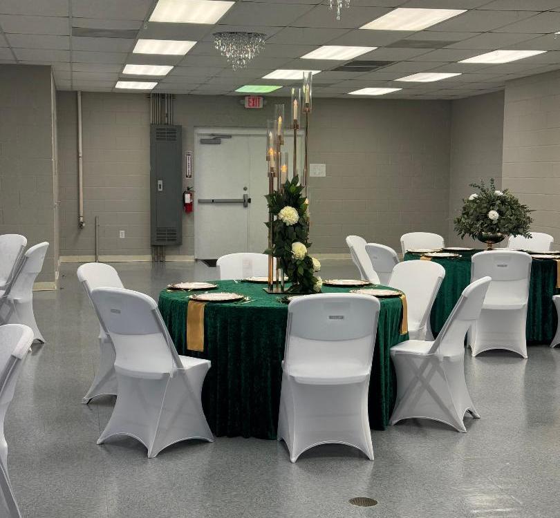 This space features 2,550 with no tables and chairs. All events include tables and chairs. We provide 2 restrooms and a kitchenette.