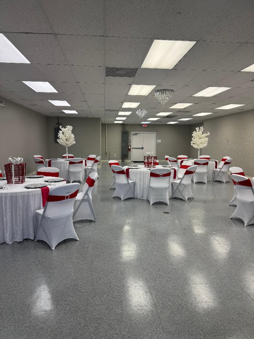 K's Royal Palace Event Venue is 2,550 square ft venue. K's Royal Palace is very spacious, very clean, and you are guaranteed to feel "Royalty" The Venue is 2 suites. One for your eating and dancing and the other suite is for your food. You have plenty of space to dance and enjoy yourself.