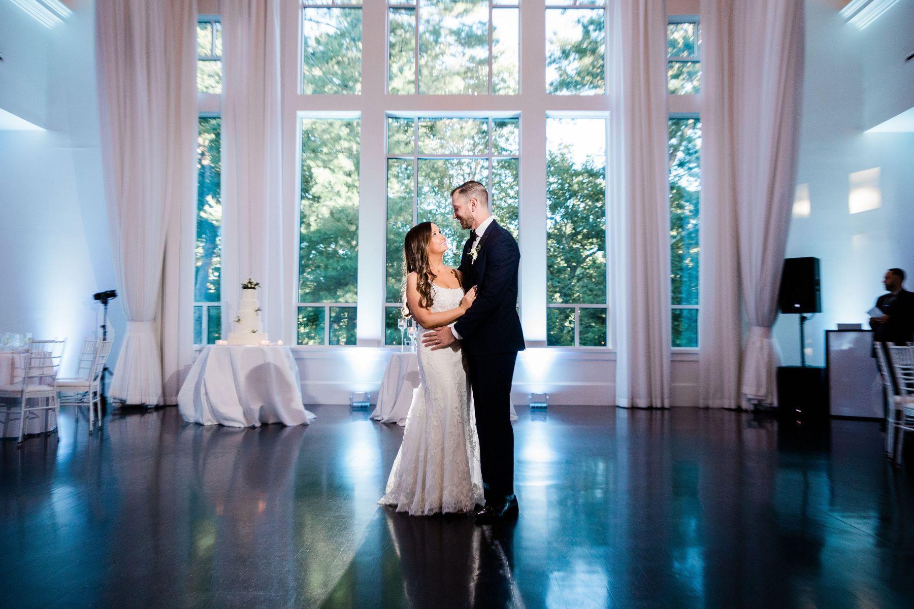 Strikingly modern flair meets natural beauty with all-white decor, dramatic windows and picturesque water views. Ample space for dancing is showcased by cathedral ceilings with contemporary crystal chandeliers and sleek, polished flooring. Flowing white curtains lead to a separate cocktail area, featuring white leather lounge furniture. The private deck and terrace area overlook the lake, set amidst towering pines. Say “I do” in a beautiful outdoor quintessential New England setting or beneath soaring majestic ceilings against a backdrop of magnificent windows with serene woodland views. Meticulous attention to detail, full service planning and flawless service complement the cutting edge cuisine prepared by our culinary team, will have your guests raving for years to come. We are excited to pair the new Lakeview Pavilion with our dedication to ensuring every event is as romantic and spectacular as you can imagine!
