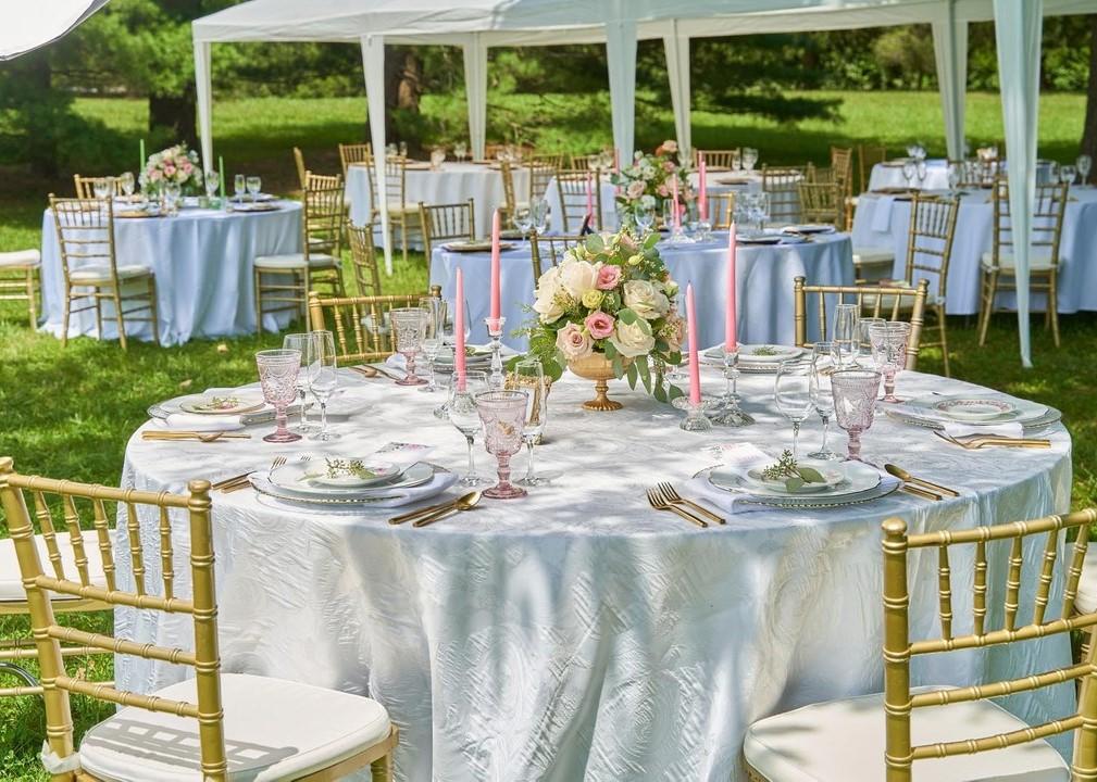 - Gold Chiavari Chairs w/ cream cushions.