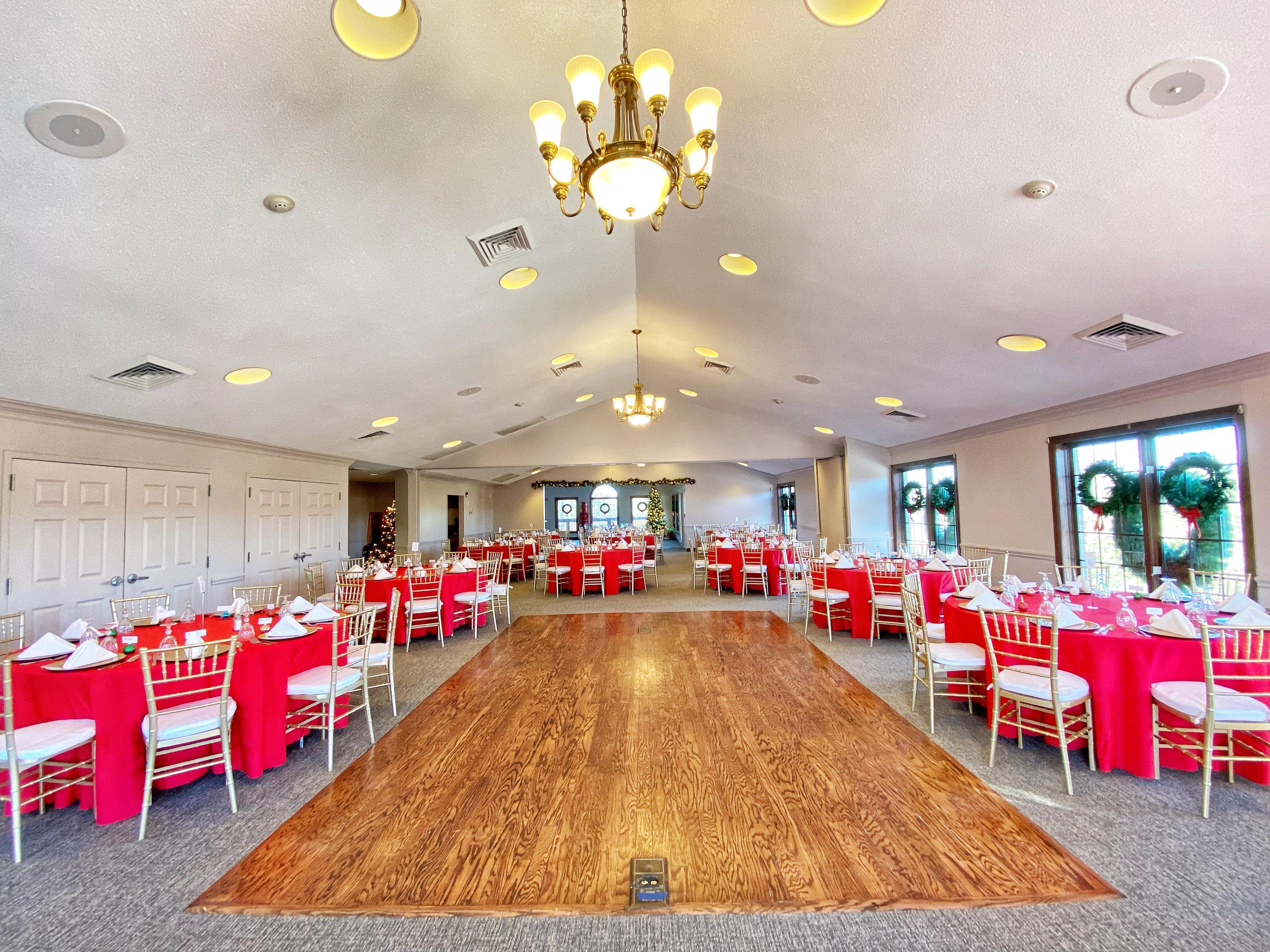 Large Banquet room with a private wrap around patio looking over the 18th hole