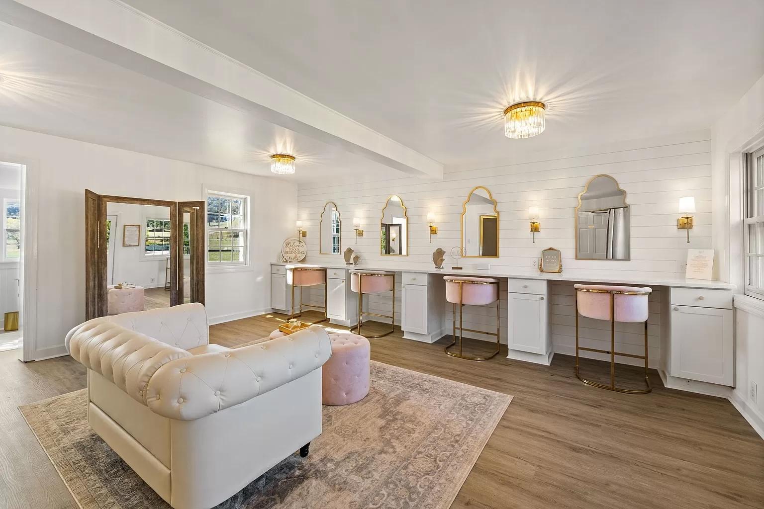 - Four getting ready stations - Private bathroom - Dressing area - Photo opt location