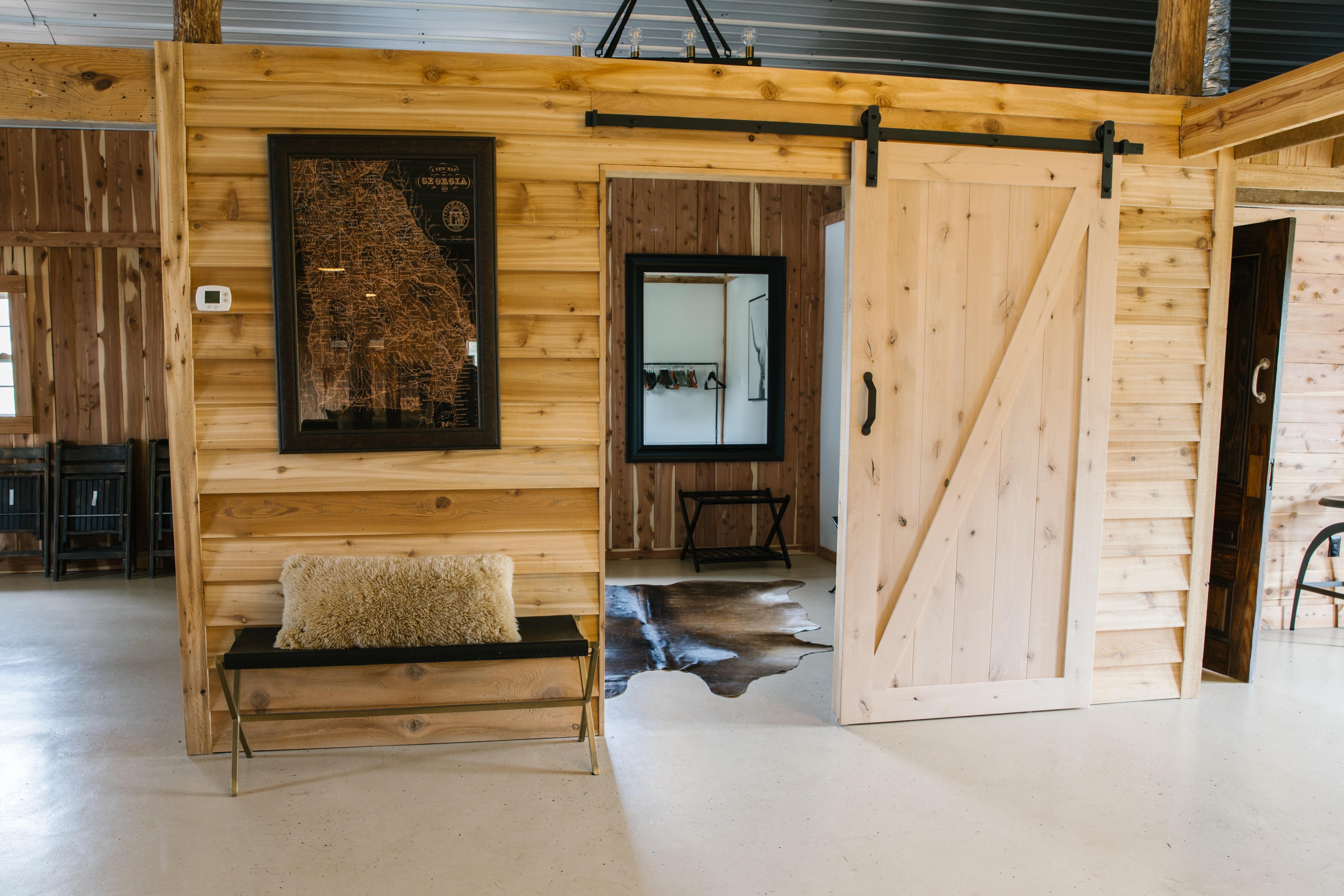 The Lodge is the perfect place to host your rehearsal dinner the night before the big day. We offer seating for up to 60 guests in a "family style" seating with our farmhouse tables. After dinner, we will turn this space into the Groomsmen Lodge for them to have a space to chill and relax in on wedding day!