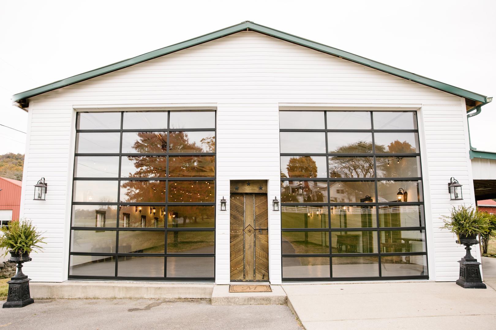 The space features a nearly 2,100 square foot area to create your ideal reception area. This can also be used as an indoor ceremony option for those rainy day weddings. Our white walls offer a "blank canvas" for you to create your dream wedding space! Our double glass garage doors offer endless views for guests, and will open when dinner is done and it's time to party!