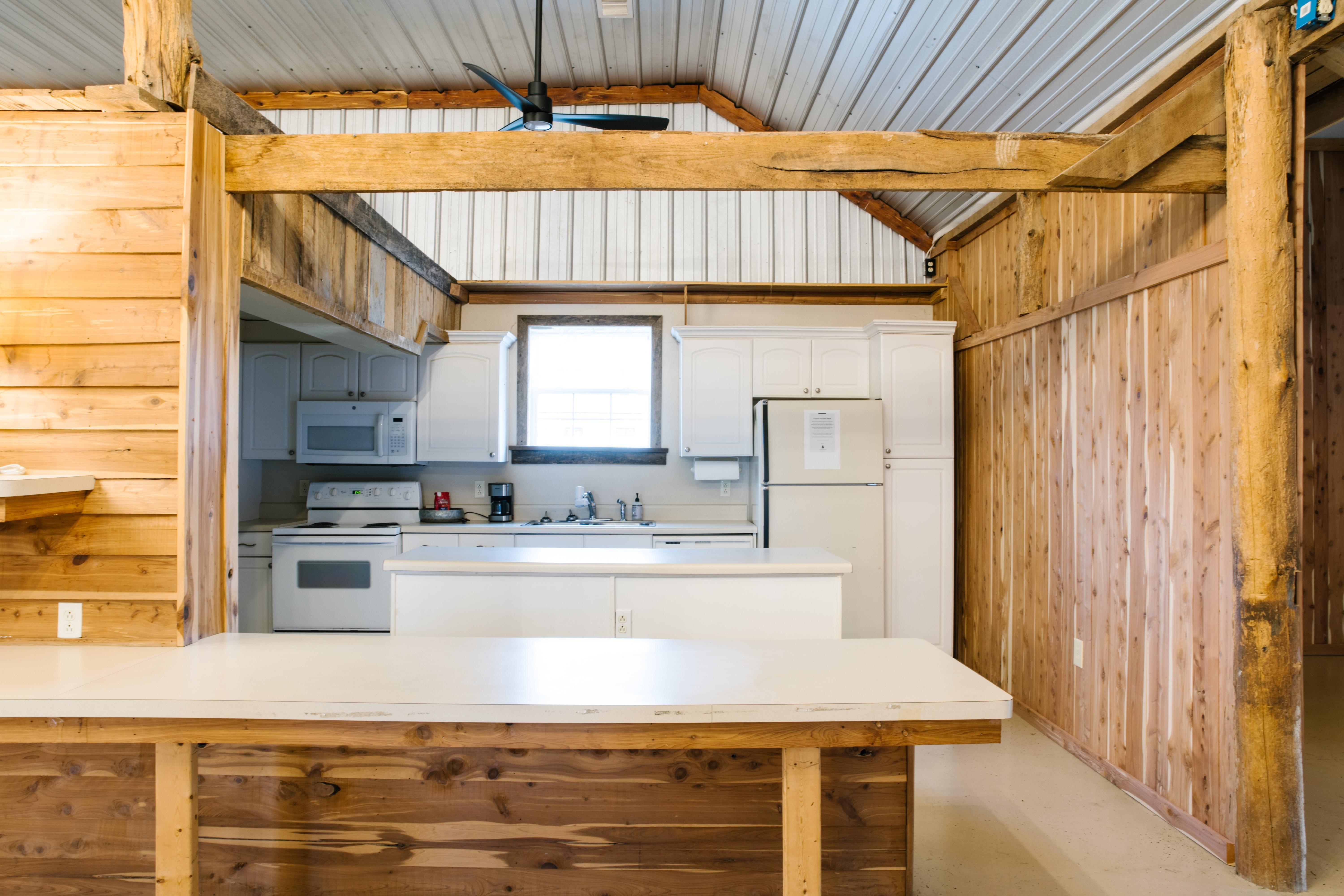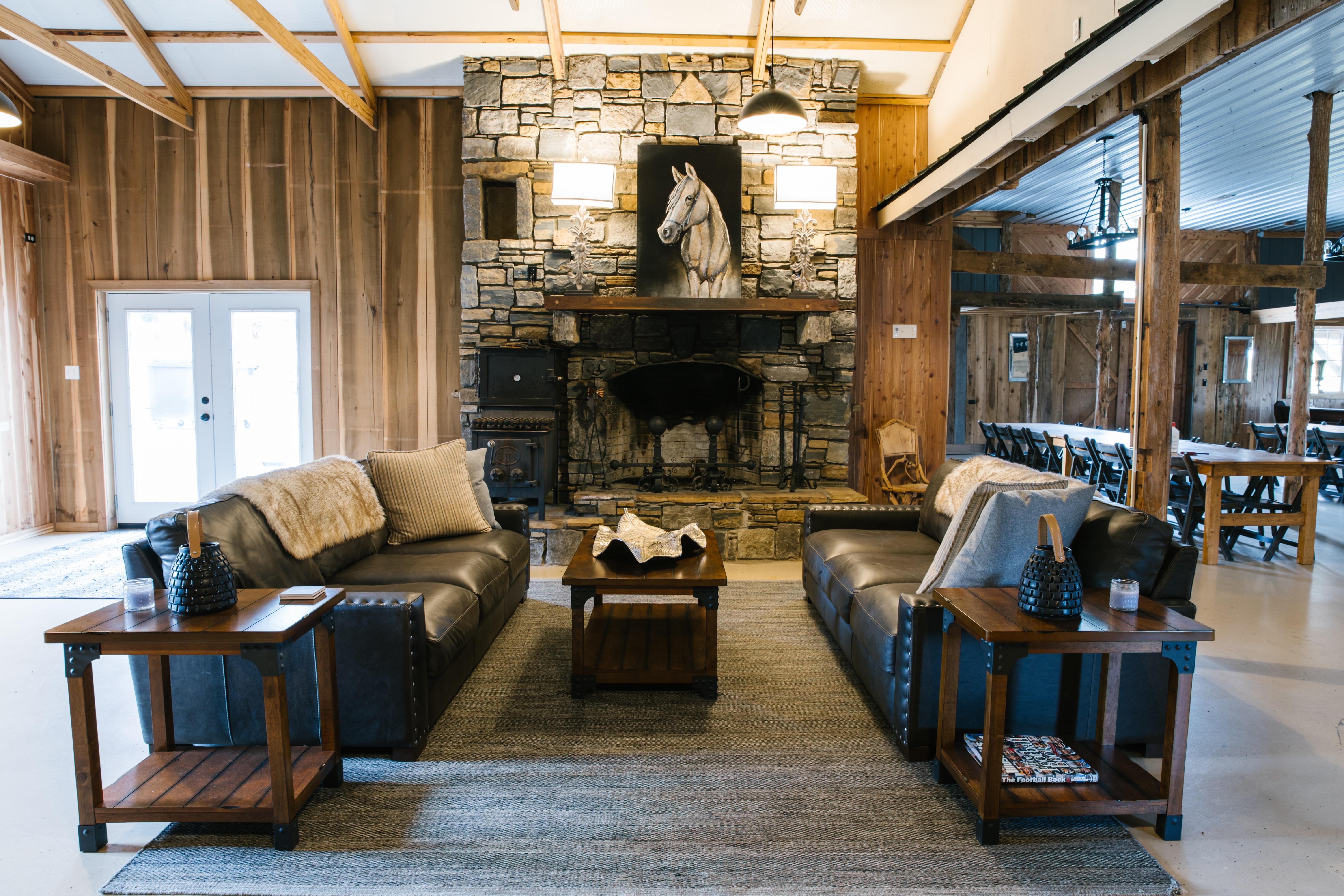 - Fireplace - Warming kitchen - Two restrooms - Private changing room - Patio access with fire pit - Cozy couches - Pool table