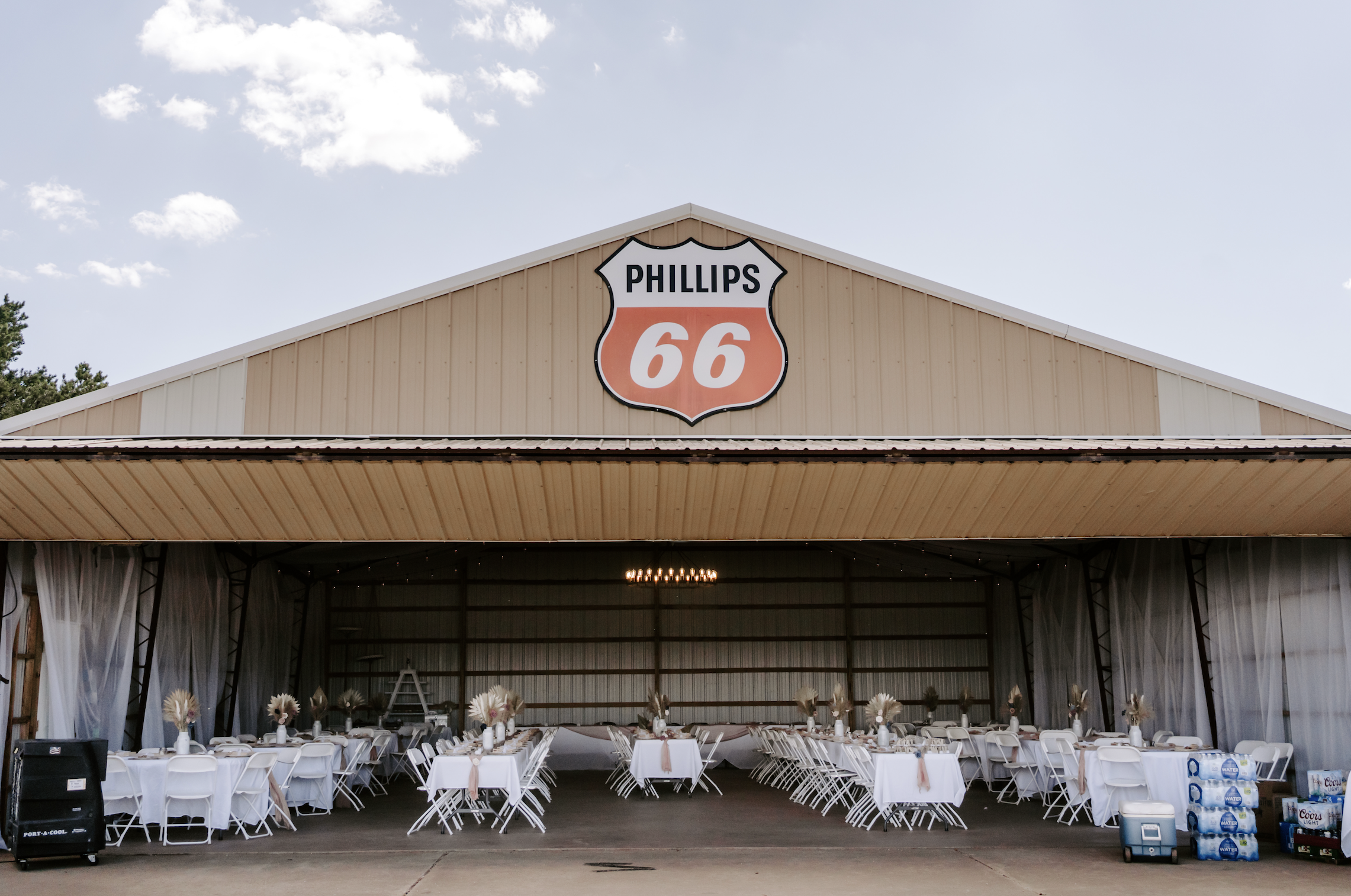 On private 40-acre property, this unique space features a real airplane hangar for receptions and rustic wooden benches for an unforgettable ceremony!