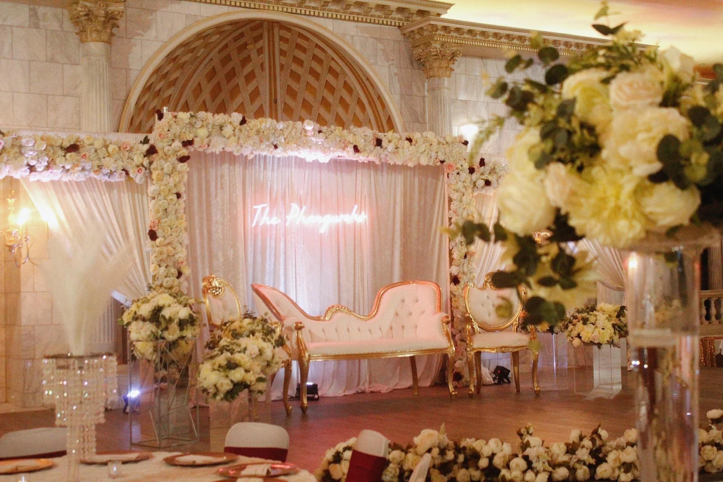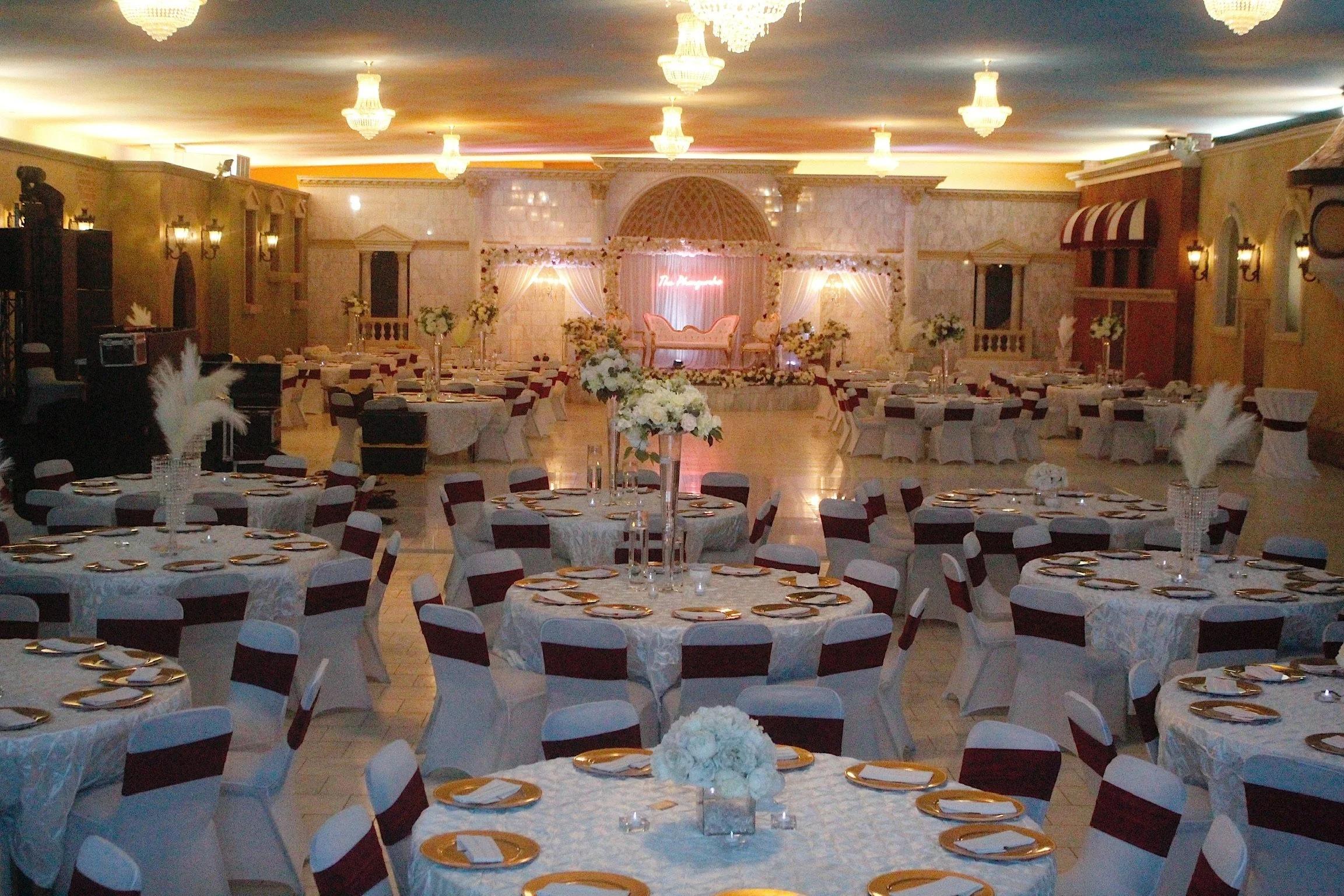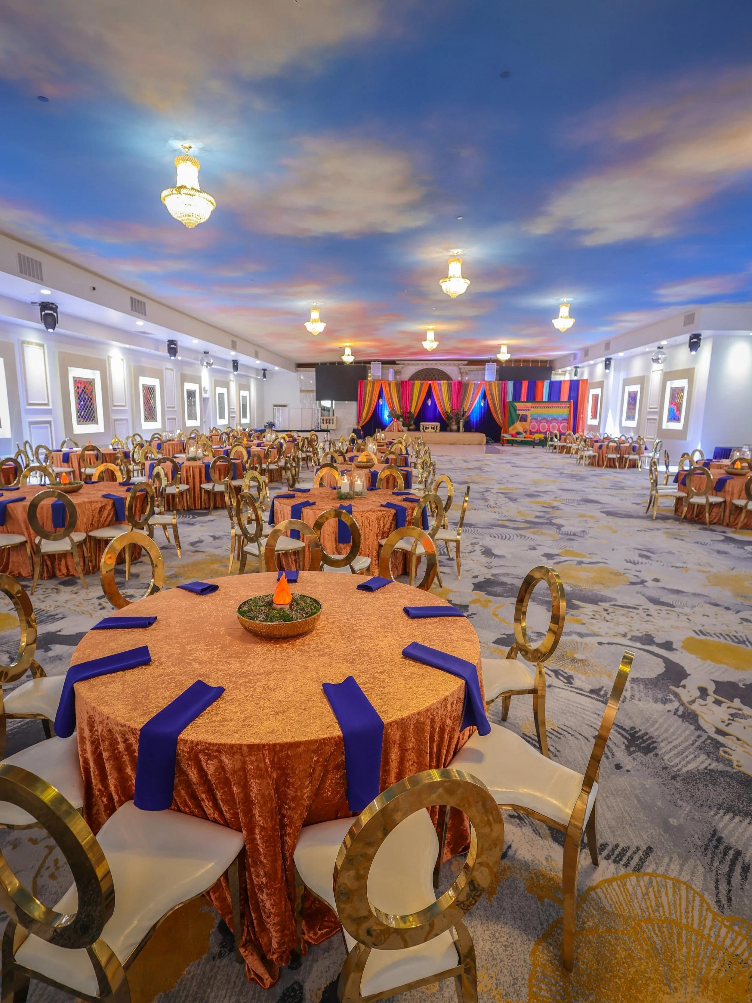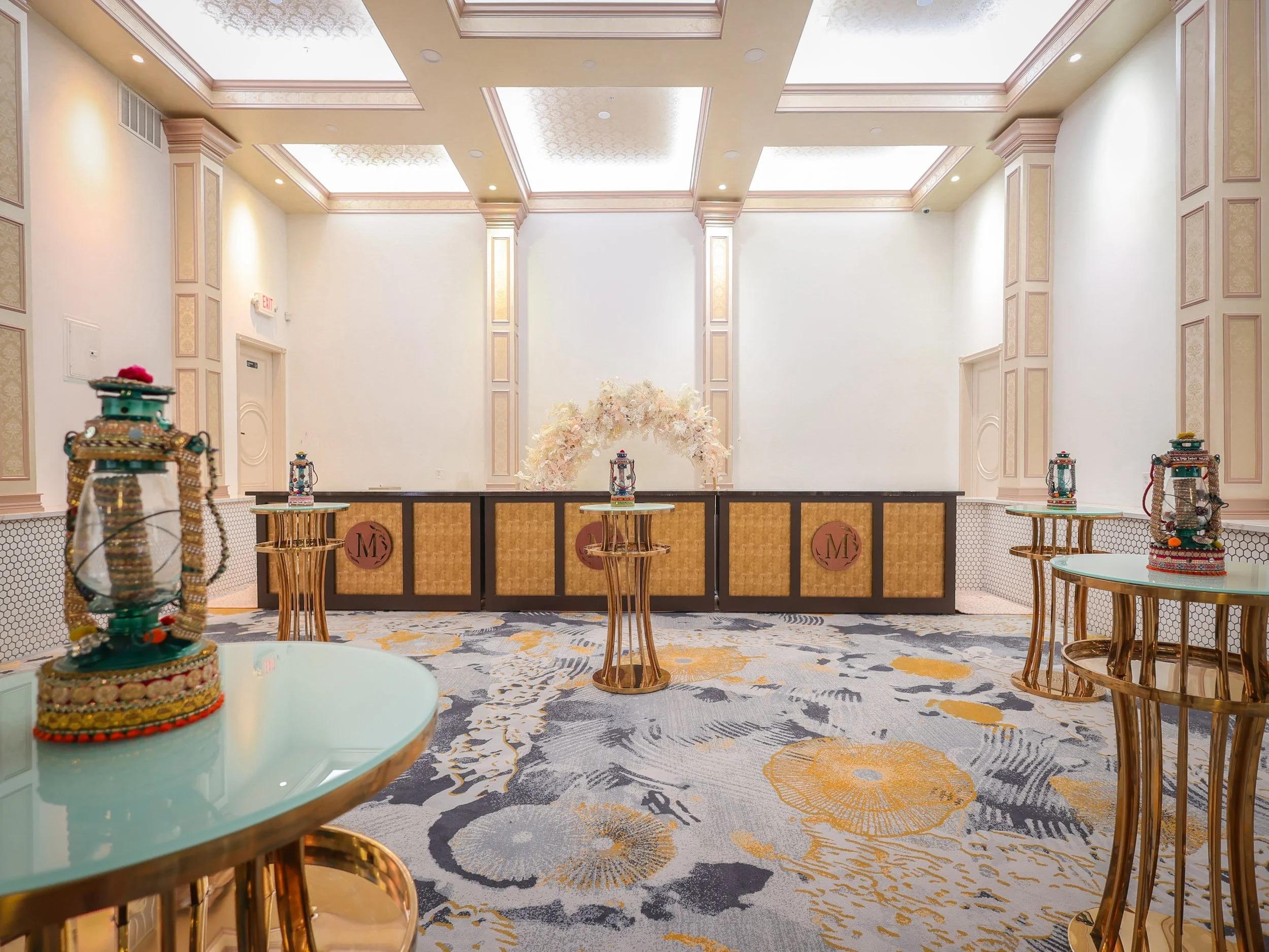 The Grand Hall at Mehfil Banquet Hall serves as a stunning backdrop for everything from intimate gatherings to grand milestone celebrations. This polished space features sophisticated design elements and unique decor pieces that add an immediate touch of style to any event. Designed for flexibility, the hall can be configured for formal seated dinners, lively cocktail hours, or high-energy receptions. With integrated lighting and a focus on sleek, modern elegance, the space allows your personal wedding vision to take center stage in a warm and inviting atmosphere.