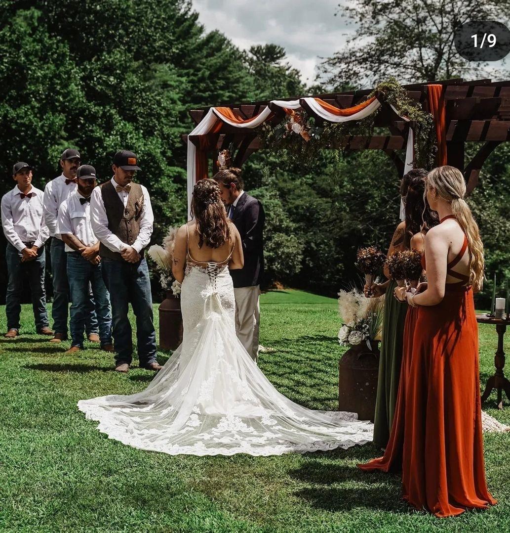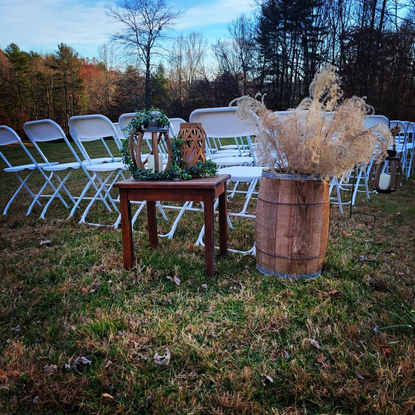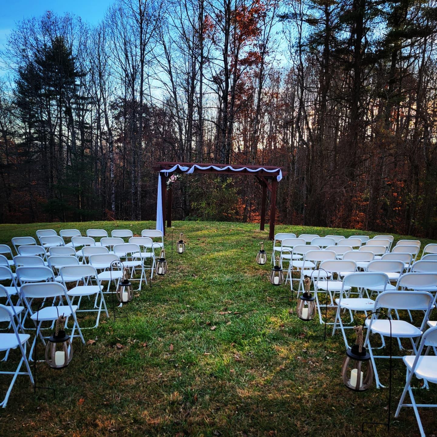 Mountain View Acres is a Rustic farmhouse style wedding venue, event center, and vacation rental space. Opening for business in 2022, MVA is located on 20 acres of rolling hills, with beautiful mountain views, country style setting, and gorgeous sunsets. Located in Flat Rock only 35 minutes from downtown Asheville. Mountain View Acres is the ideal setting for your dream wedding. Whether you are looking to have a small ceremony, an elopement, or a large wedding with all your family and friends, we can accommodate. The venue includes a pond, a cabin for bridal party, game room, "The Farmhouse" and "The Barn for bridal party prep and geoomsmen prep, pergola for ceremony with seating for up to 100 guests, pavilion area for reception with stage, men's and women's restrooms, and accommodations for guests to stay.